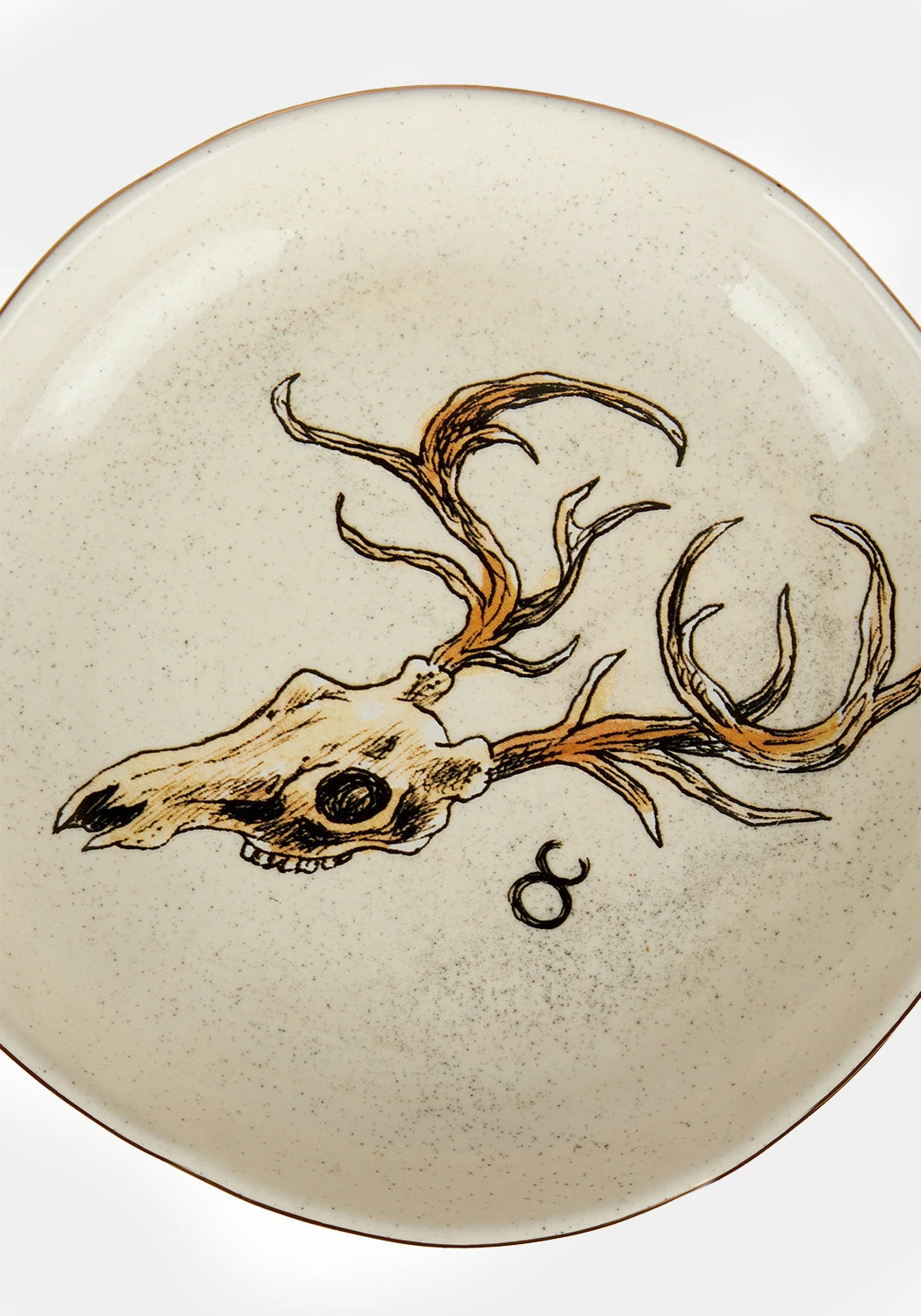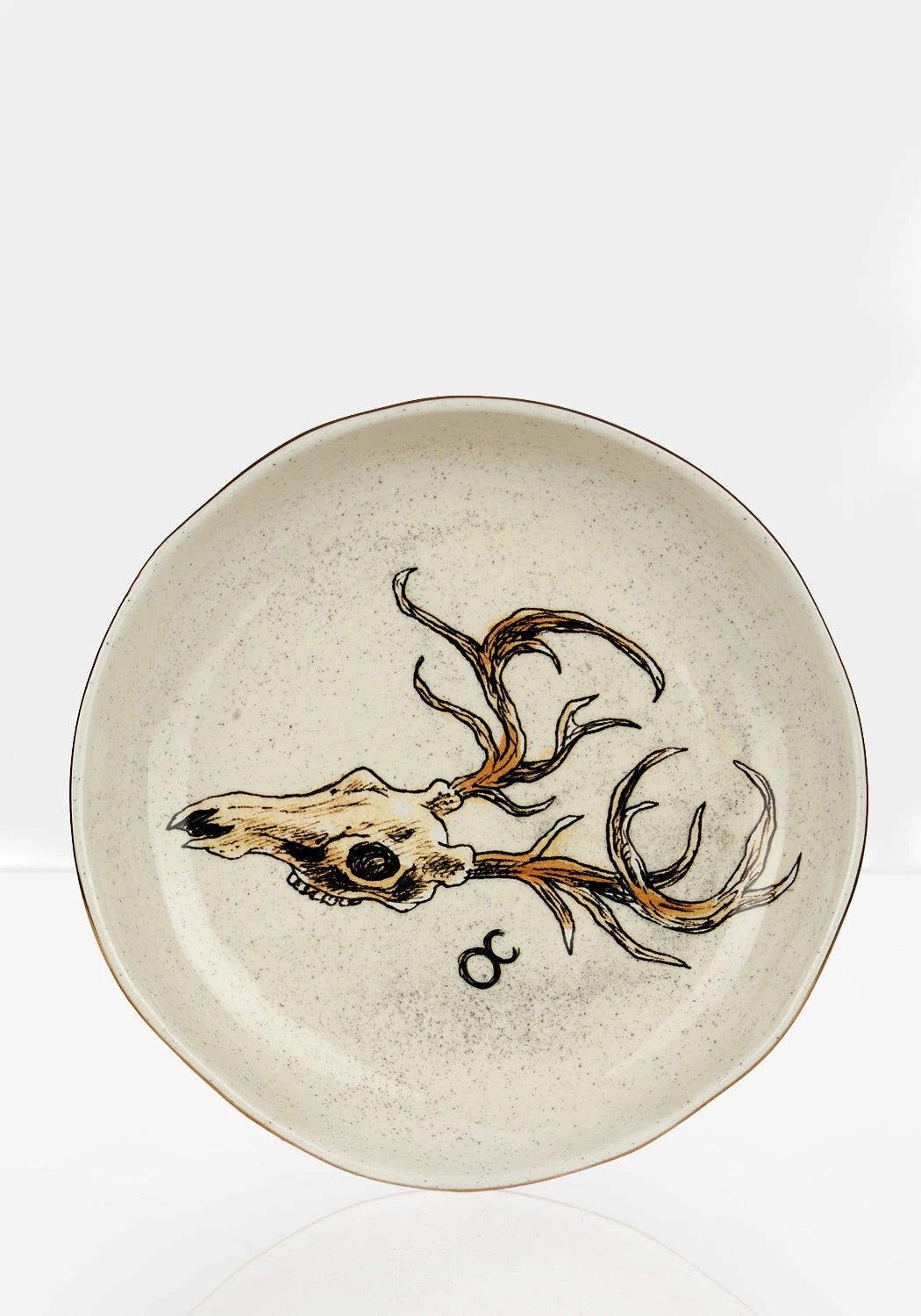 ✦ Ceramic stag deep plate with speckled ivory glaze