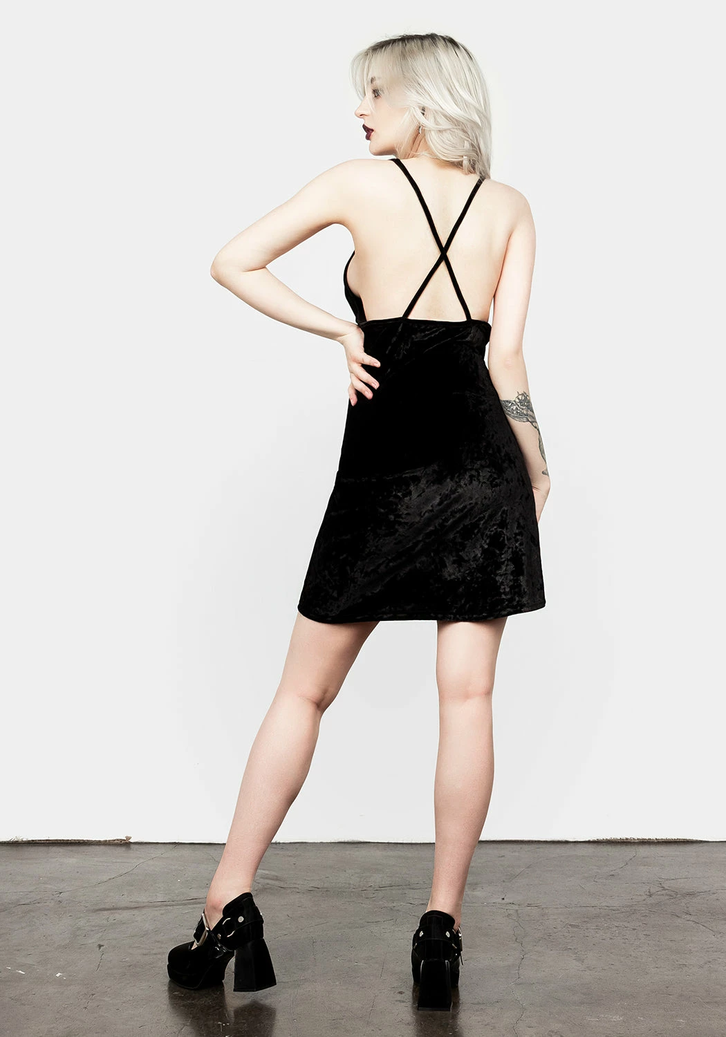 ✦ Gothic mini slip dress comes in supple black velour