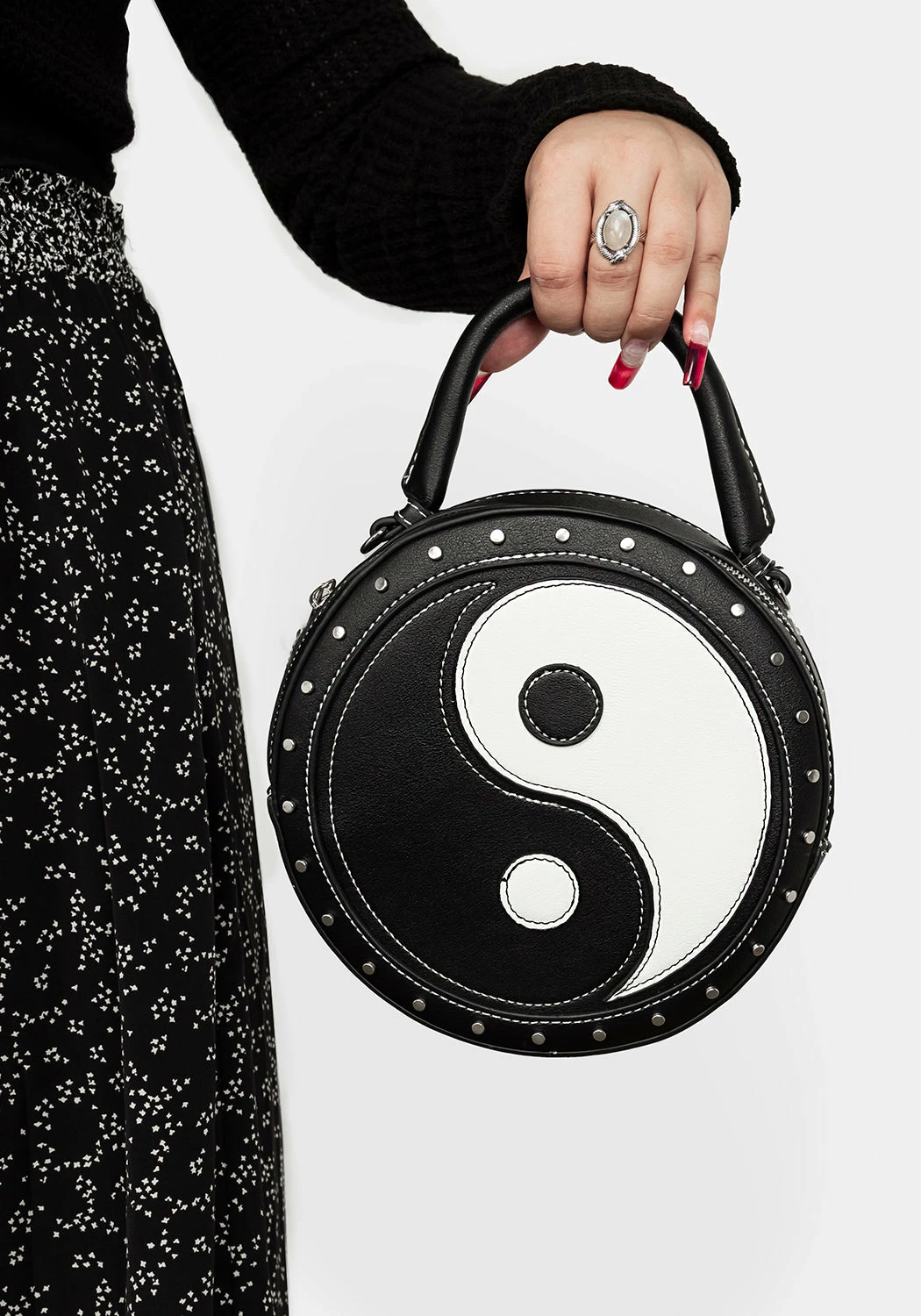 ☯ Adorned with silver metal studs for punk edge