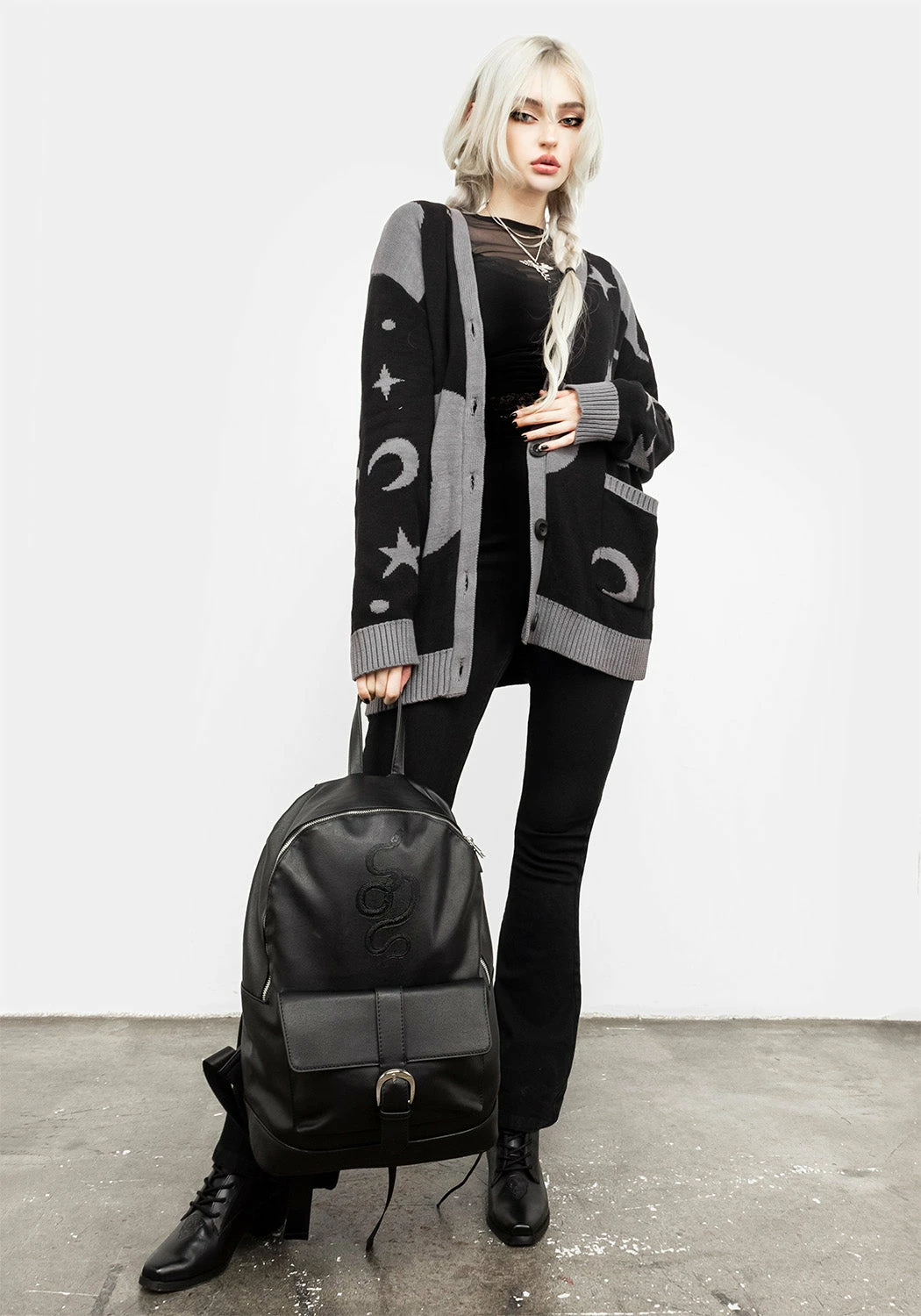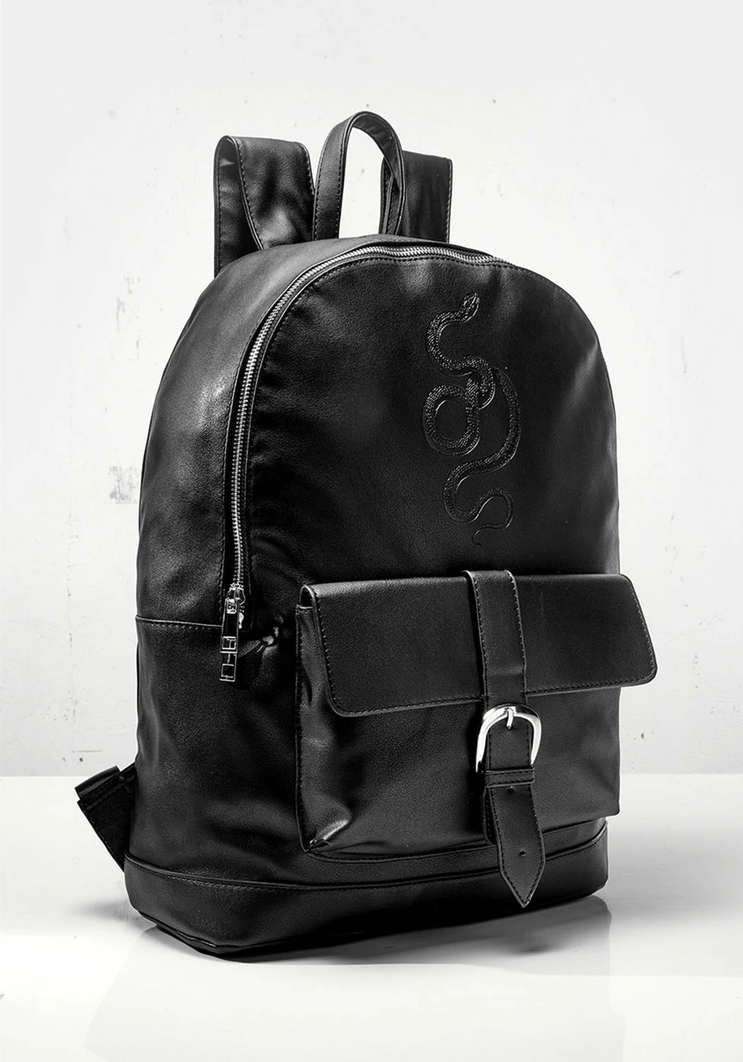 𓆚 Black faux leather snake backpack with front pocket