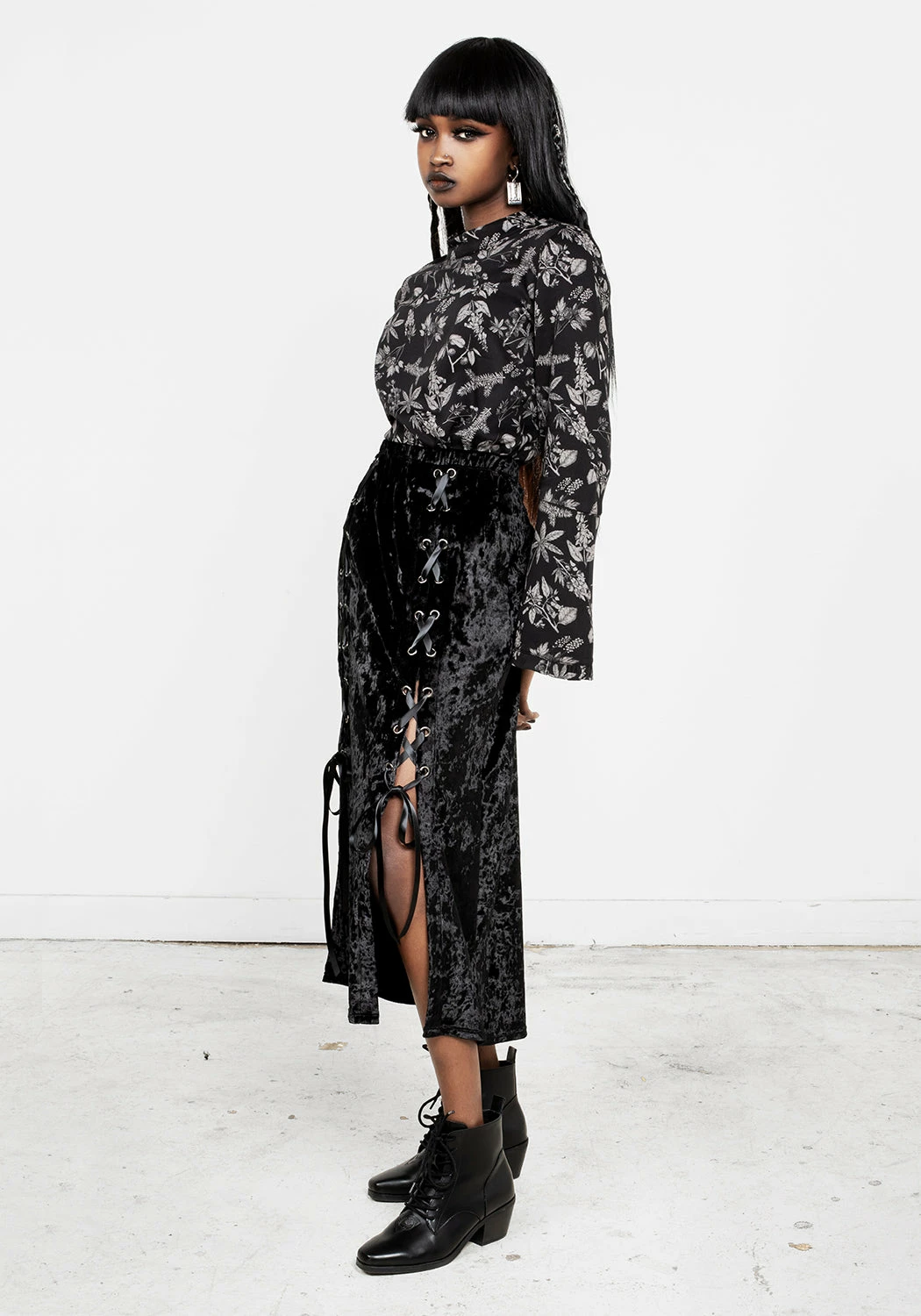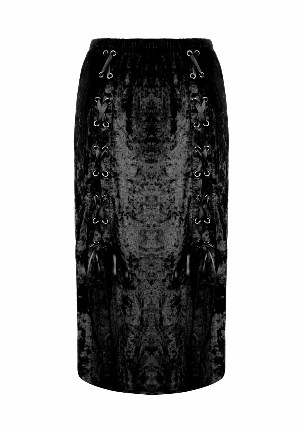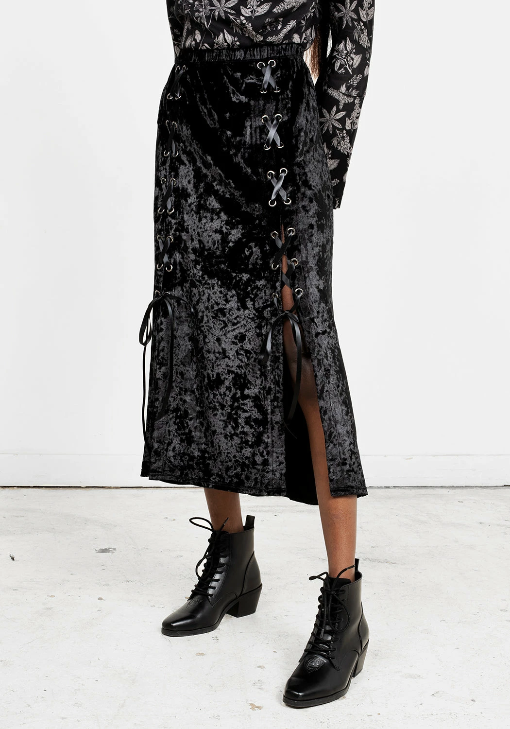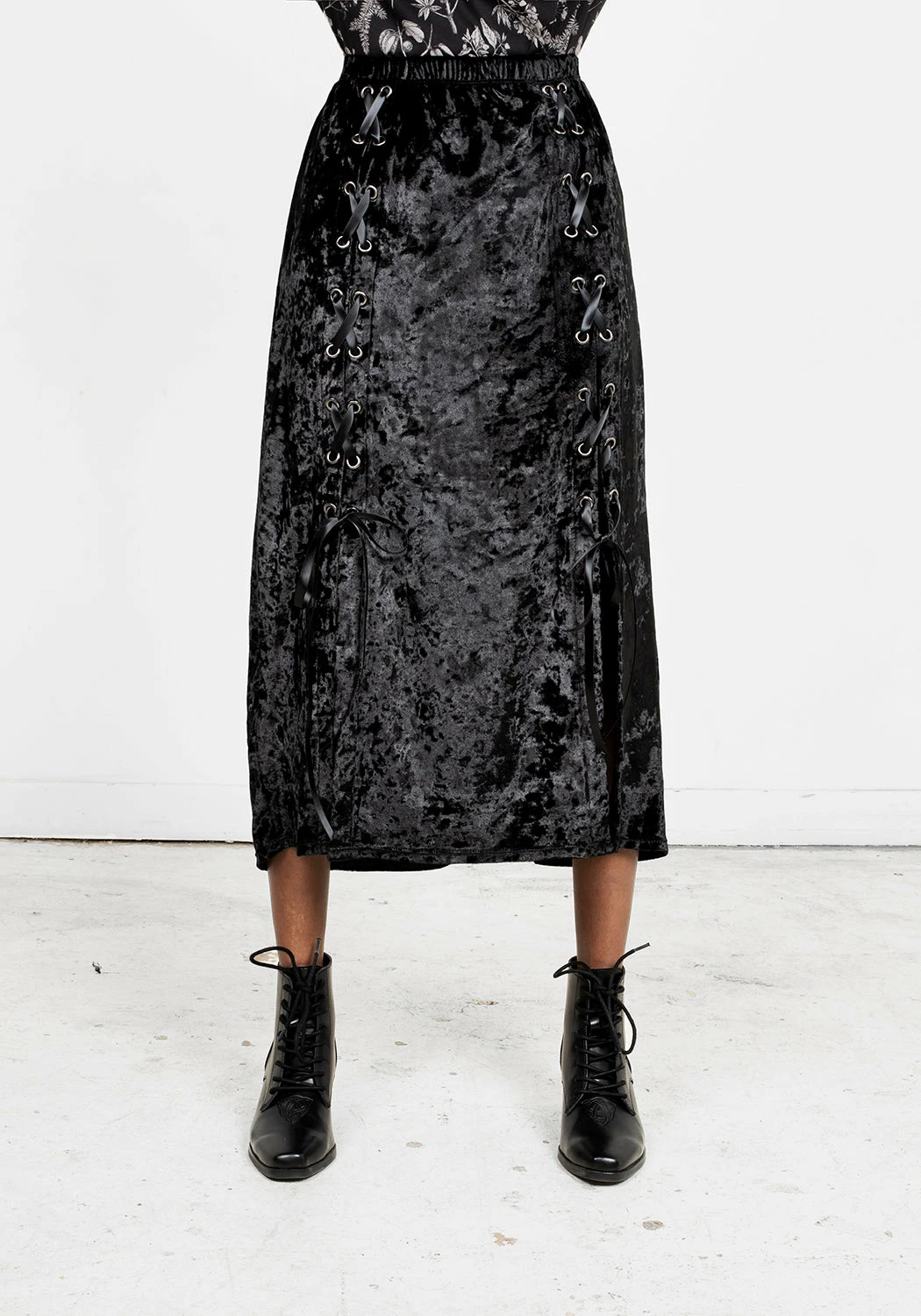 ❦ Lace-up midi skirt in black velvet