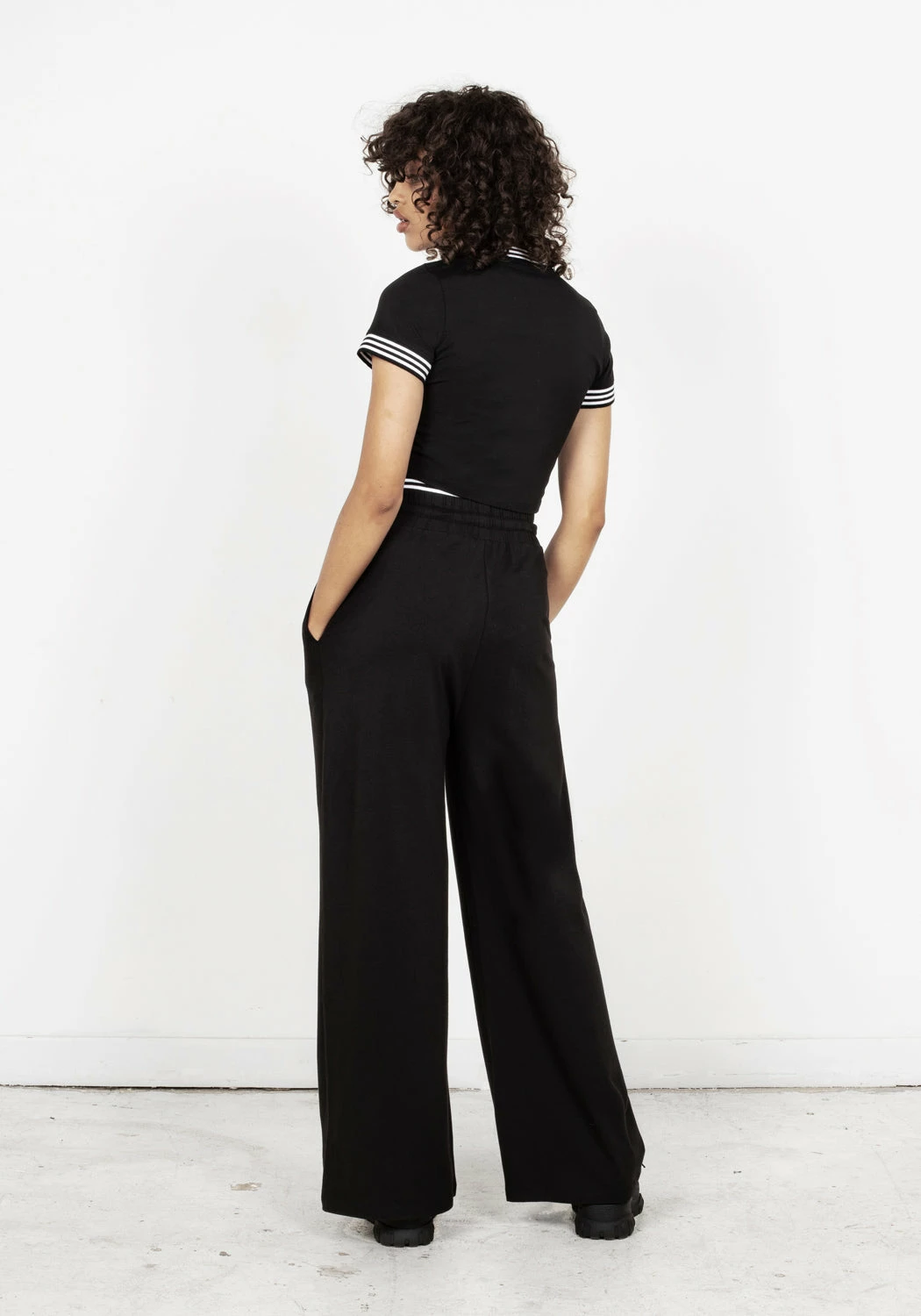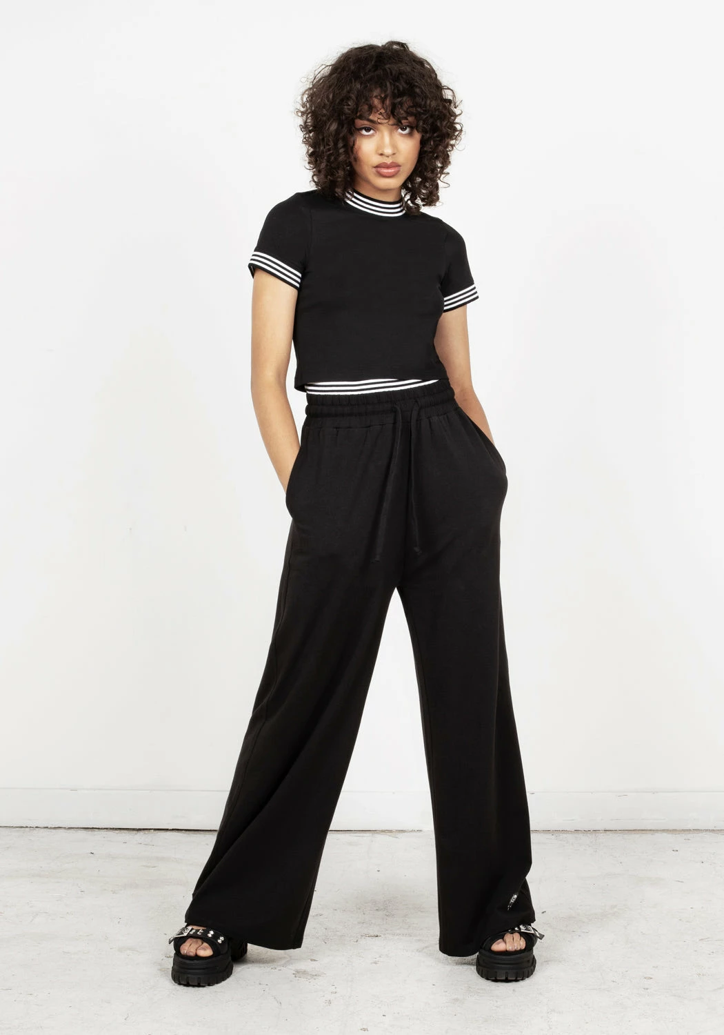 ◐ Black double waistband wide leg jogger