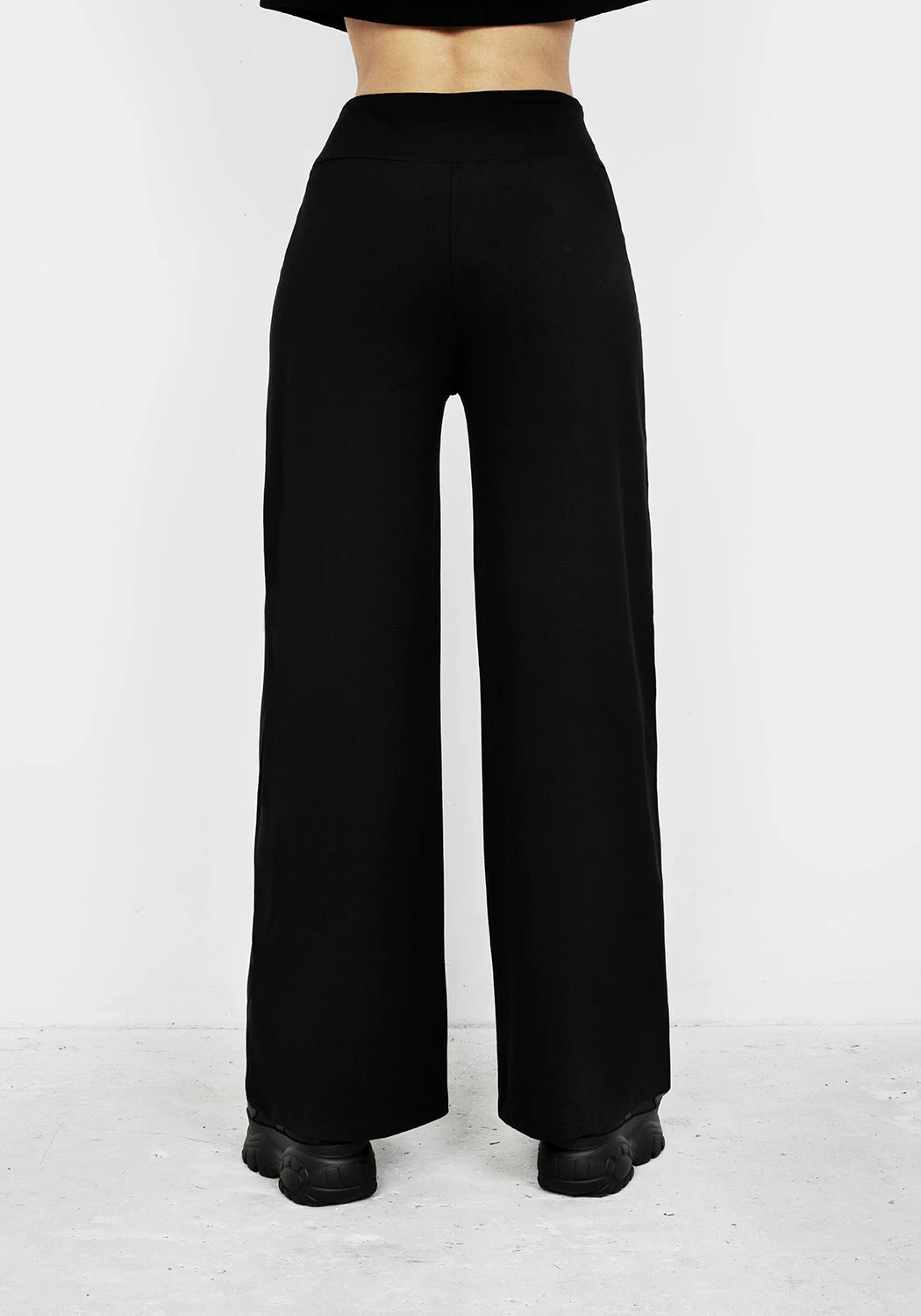 ✦ Black high-waisted wide leg lounge pants with white graphic print