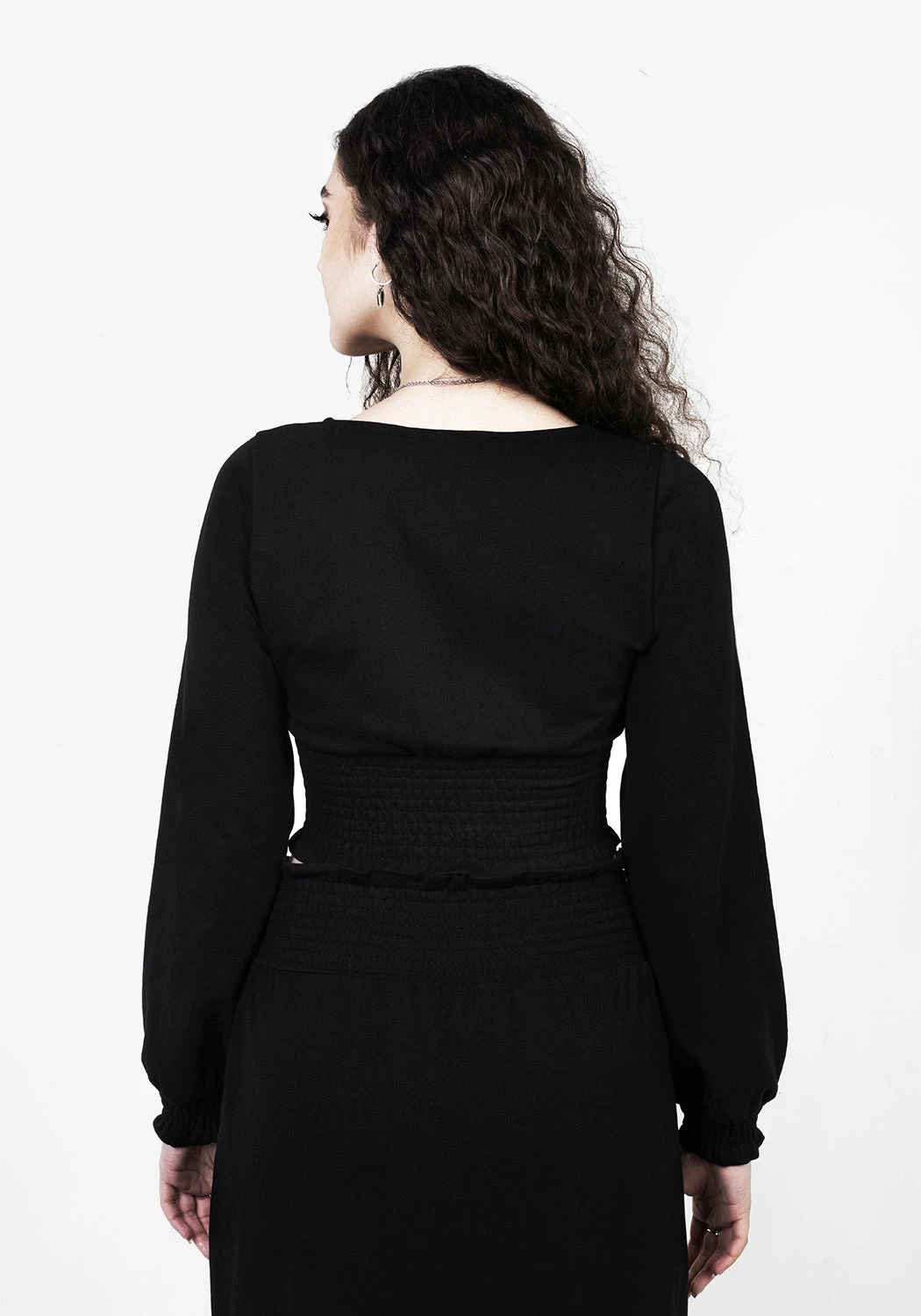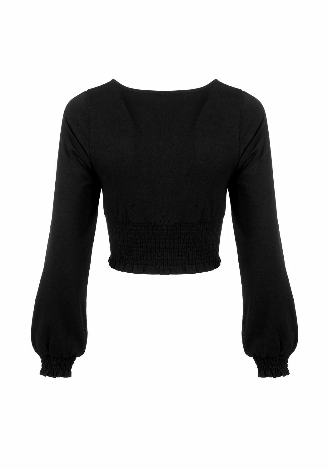 ❦ Long sleeve shirred black crop top