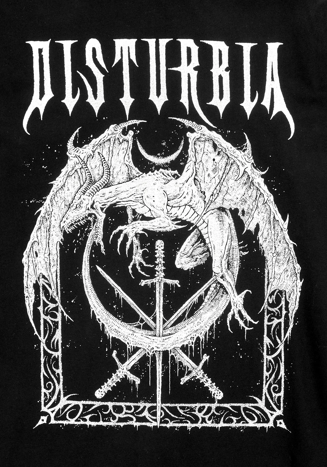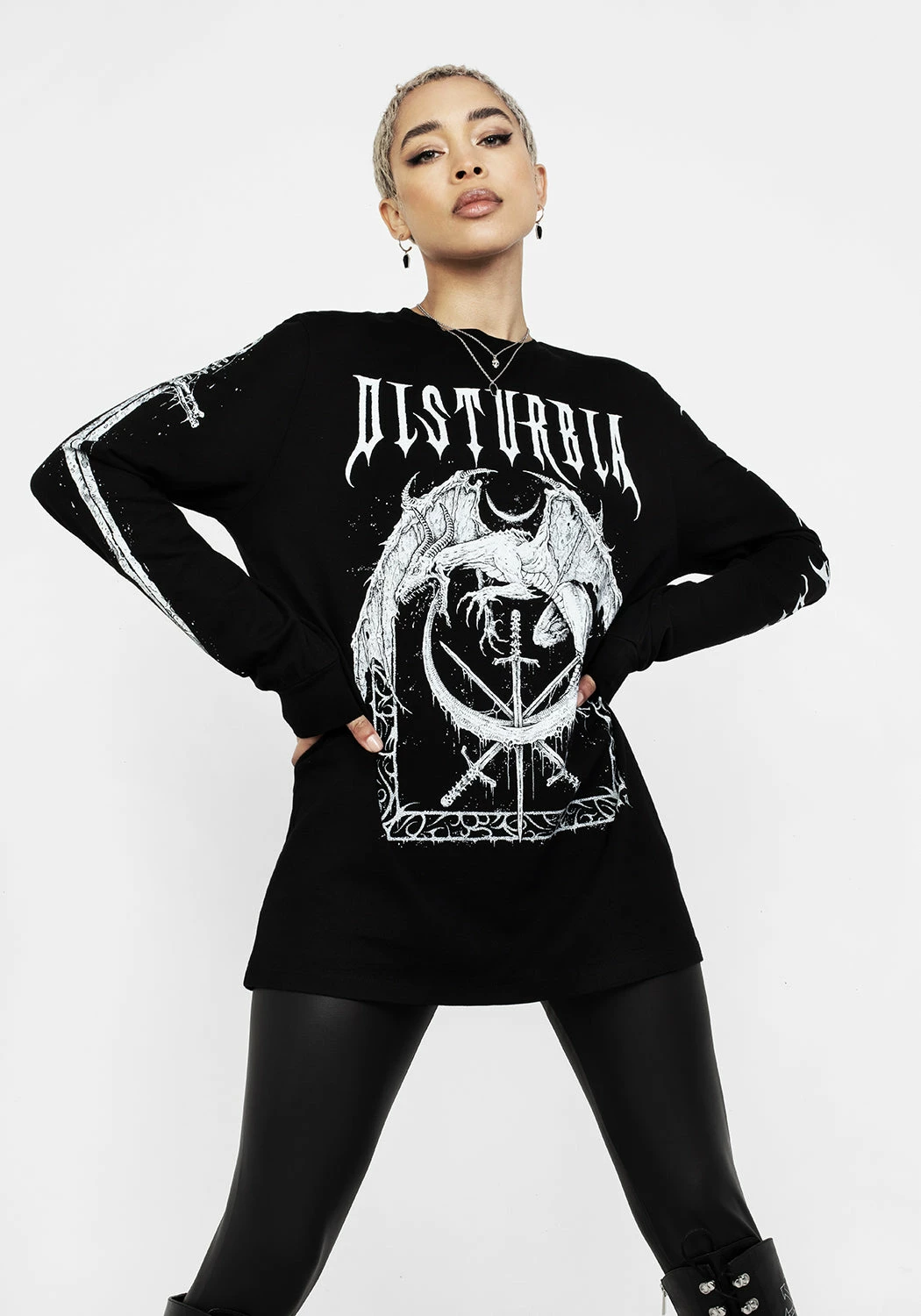 ✦ Contrasting white graphic print on front and sleeves – here be dragons