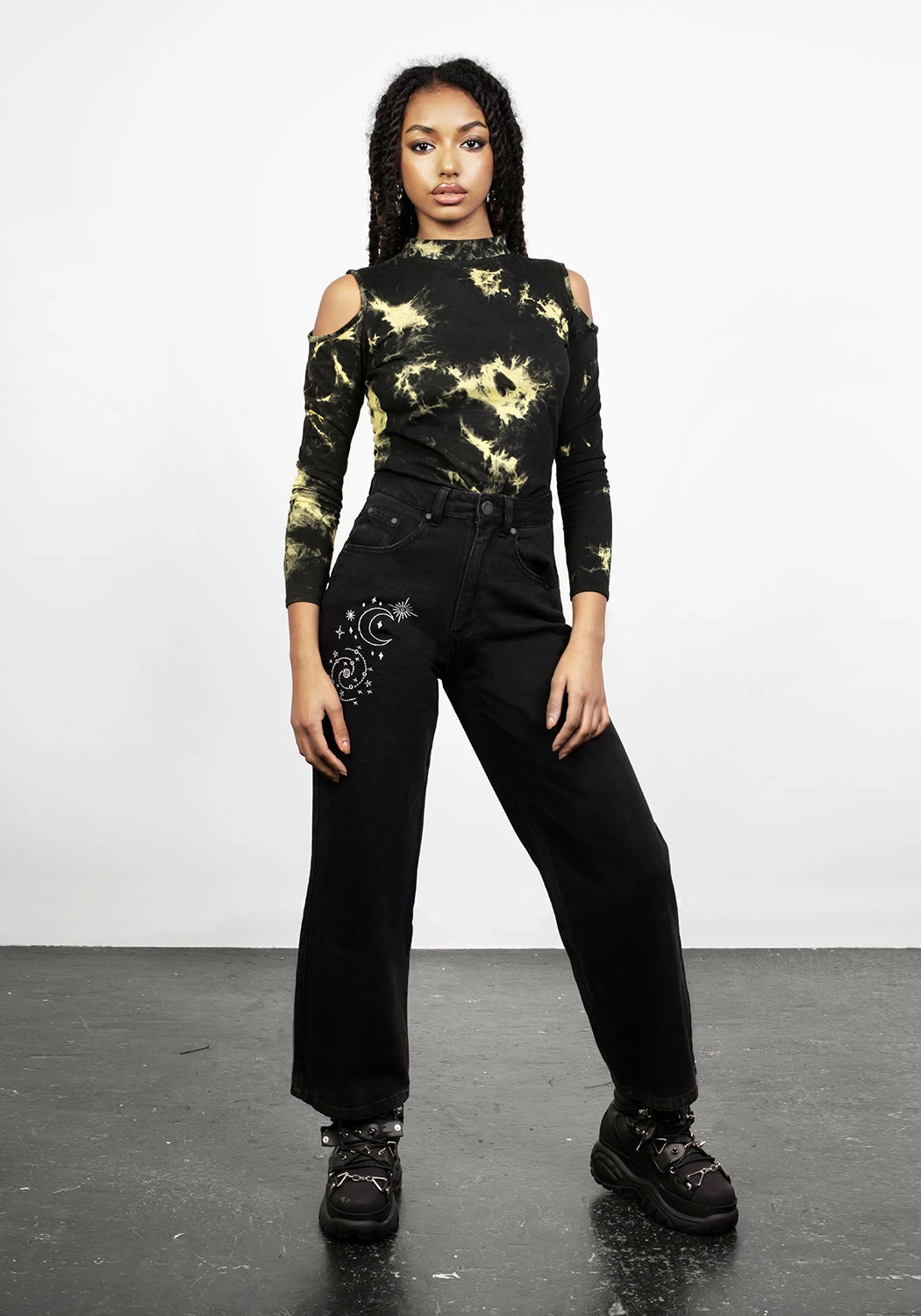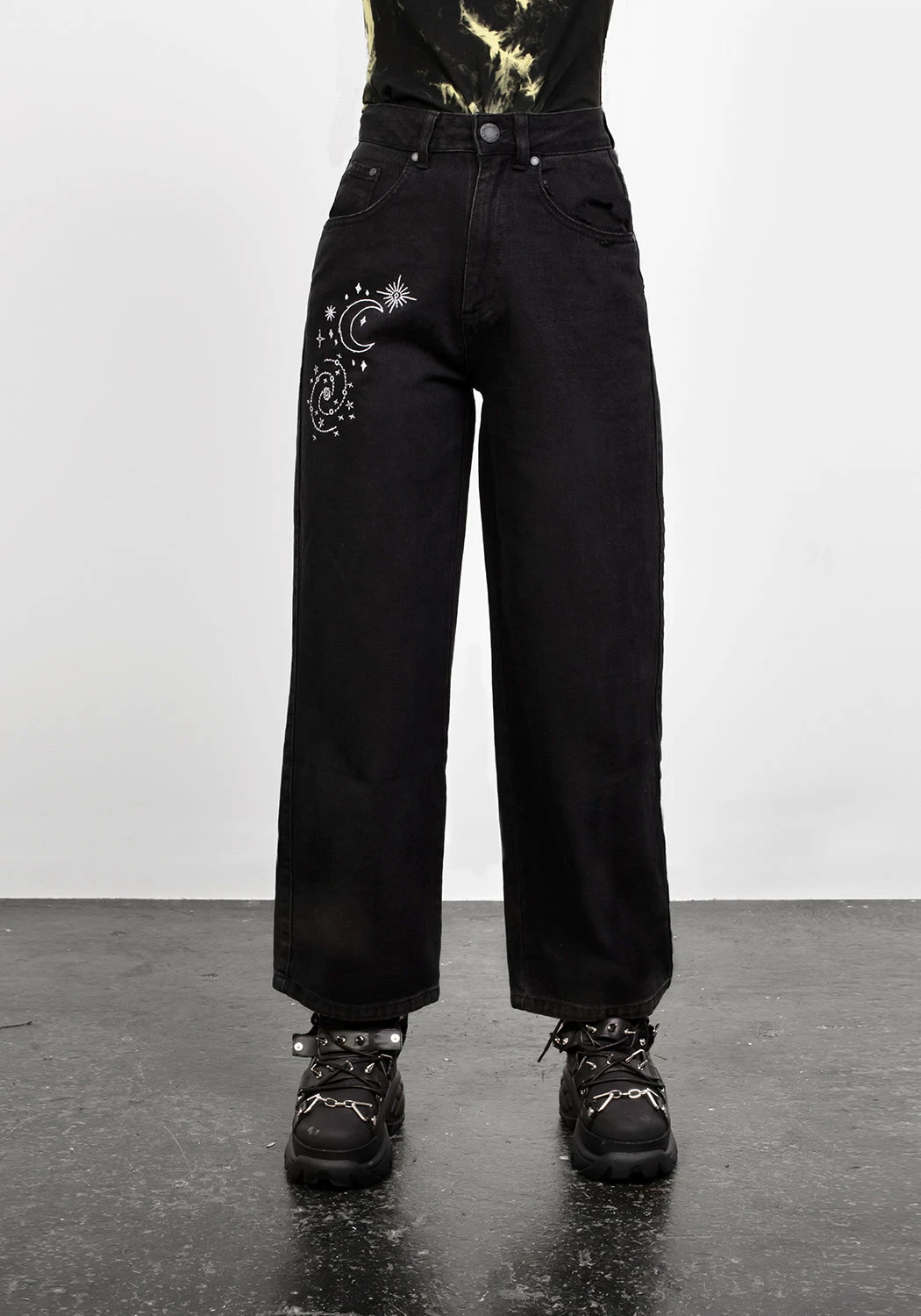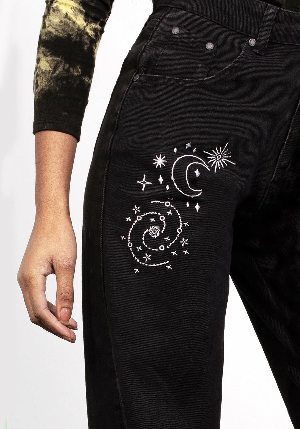 ✦ White galaxy embroidery down front leg