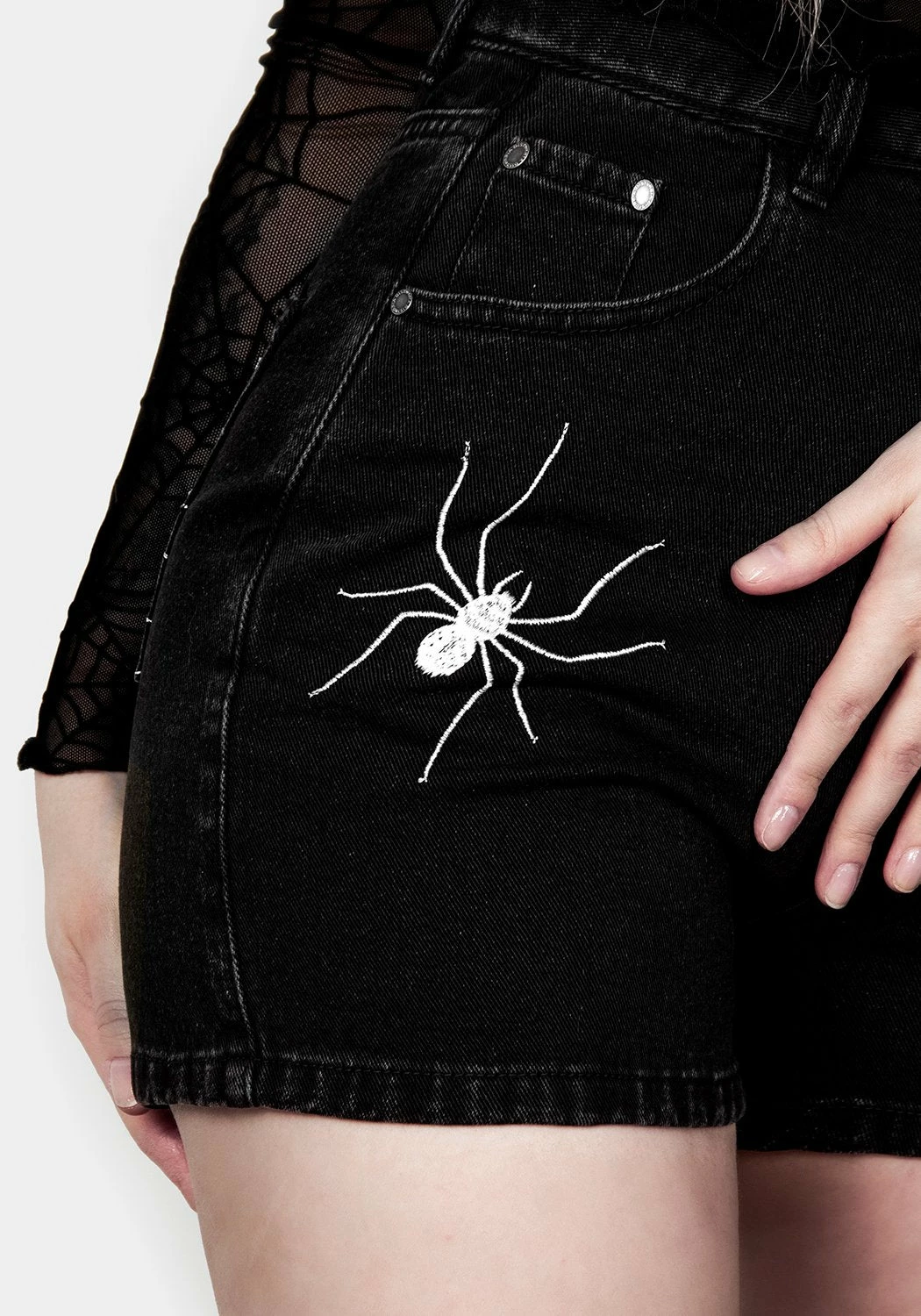 ๐ธ๏ธ High-riseย denim spiderweb shortsย