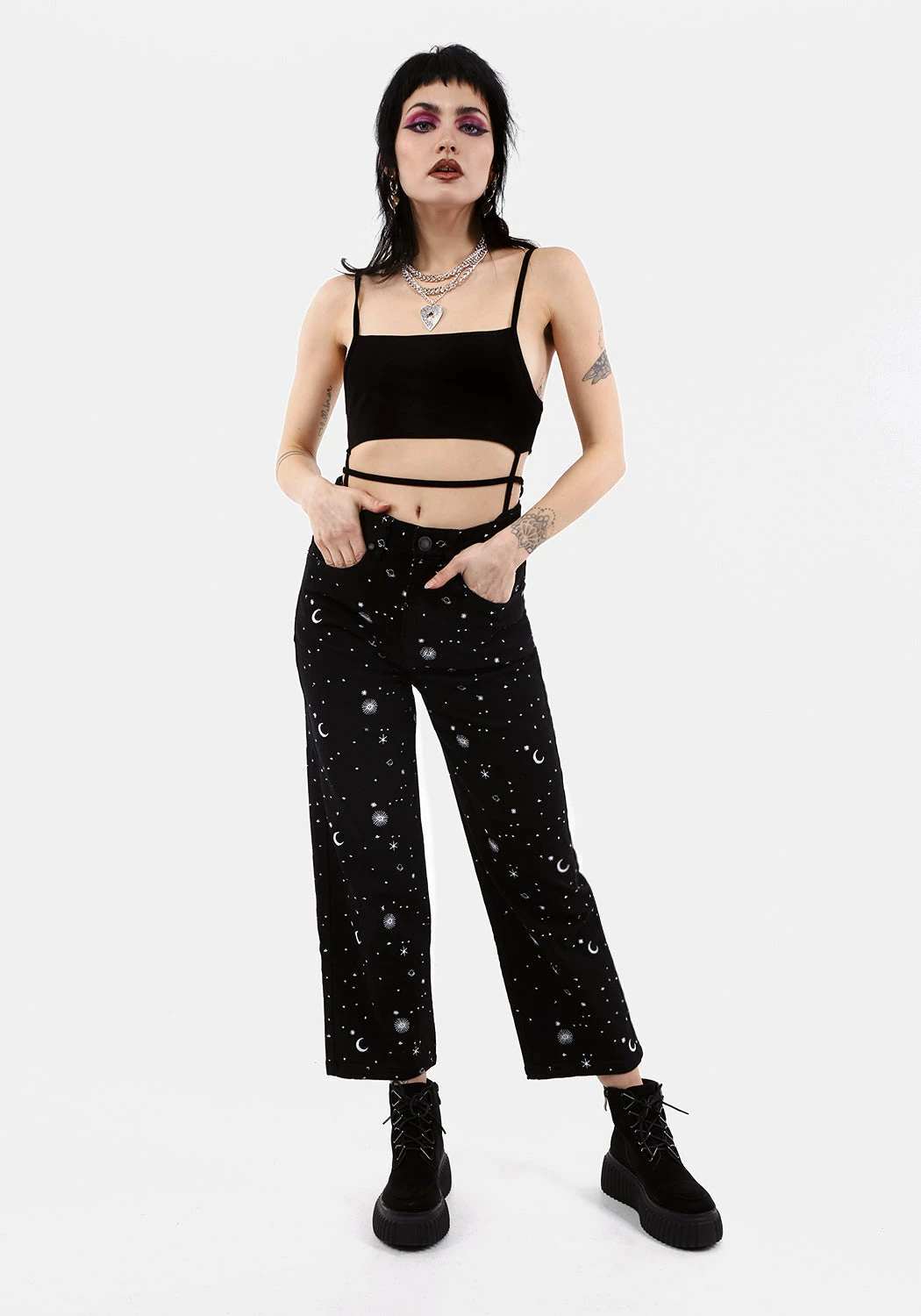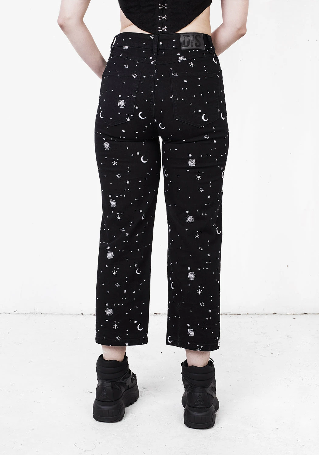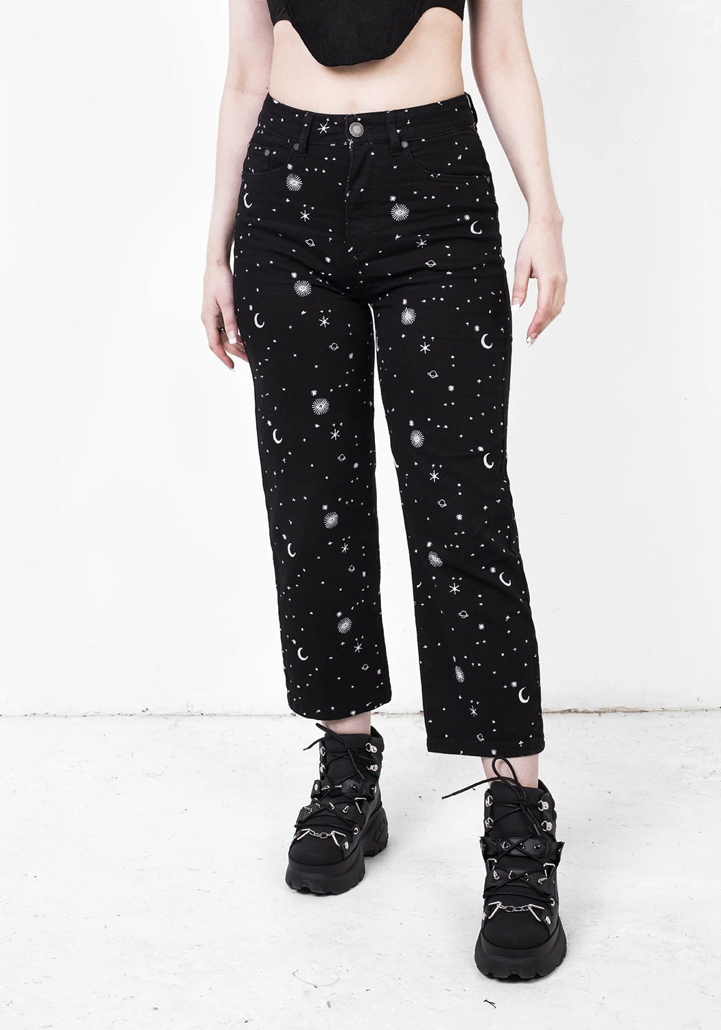 ✺ White all-over embroidery – stars, moons and planets (no loose threads on inside of jeans)