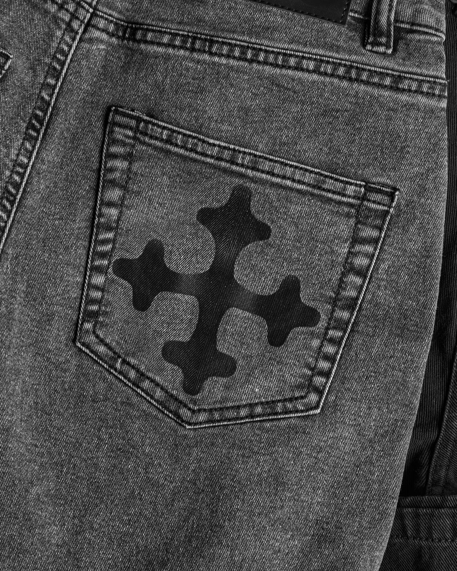 🕂 Black cross symbol on right back pocket
