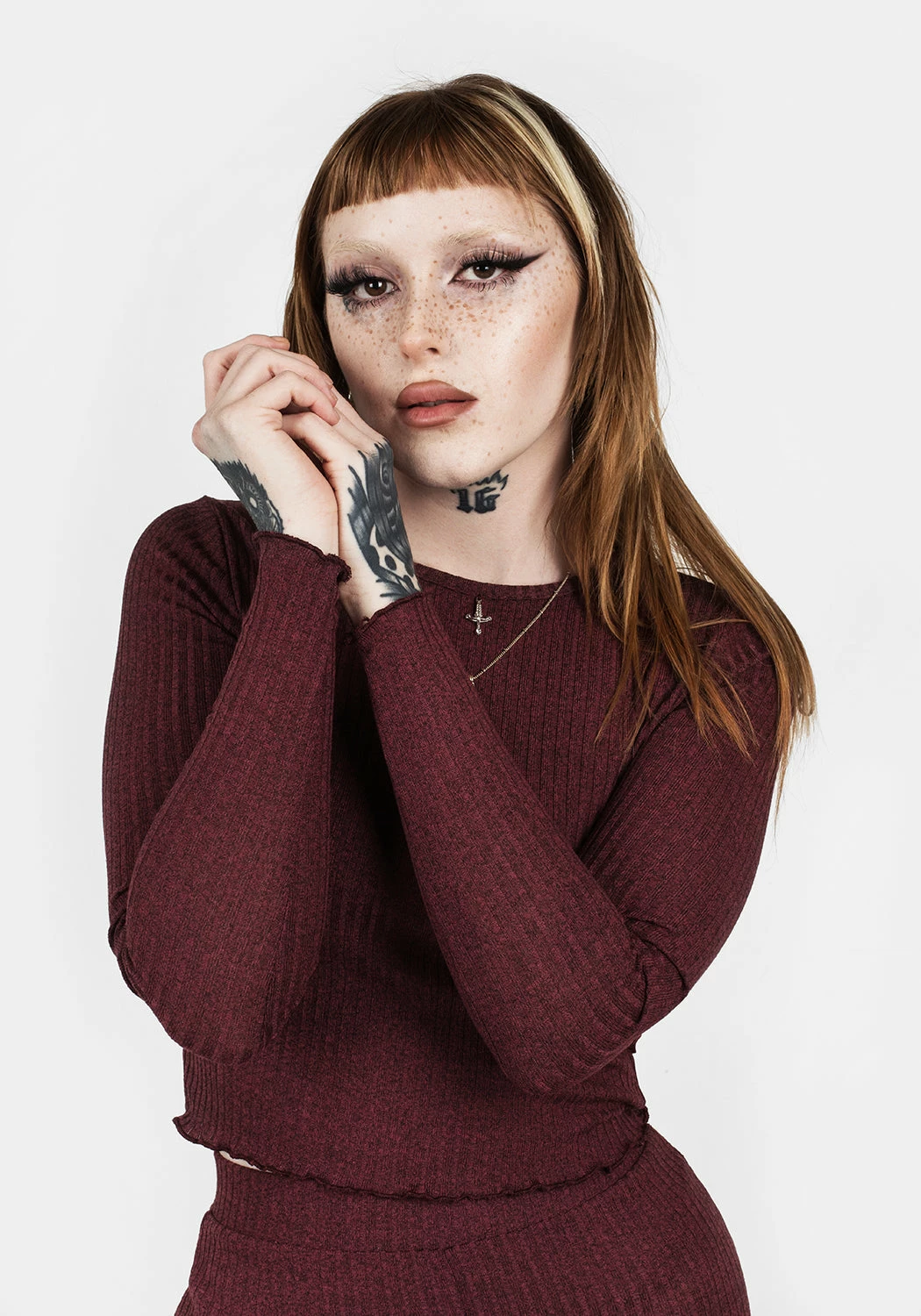 ♥ Silver dagger charm at centre of crew neck