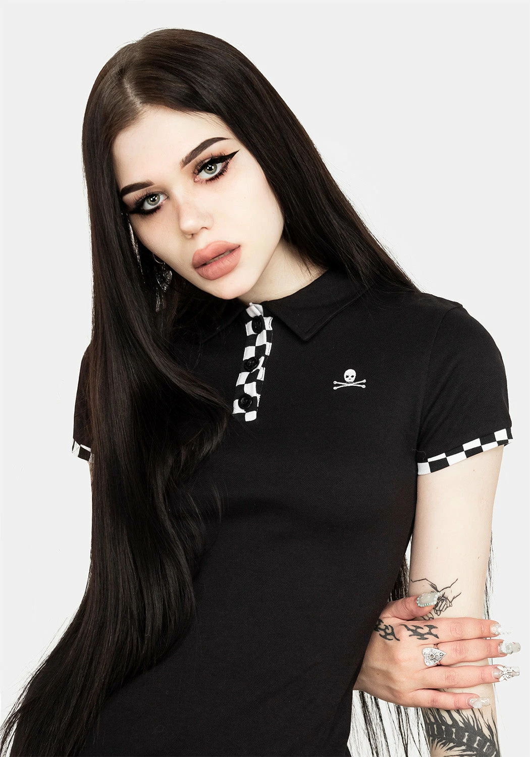 ☠ Contrast checkerboard trims on sleeves, button placket & inner back yoke