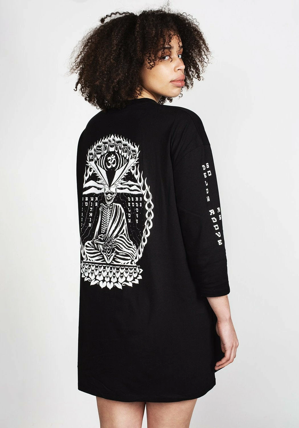 ✦ Large skeleton monk design on back of tee dress