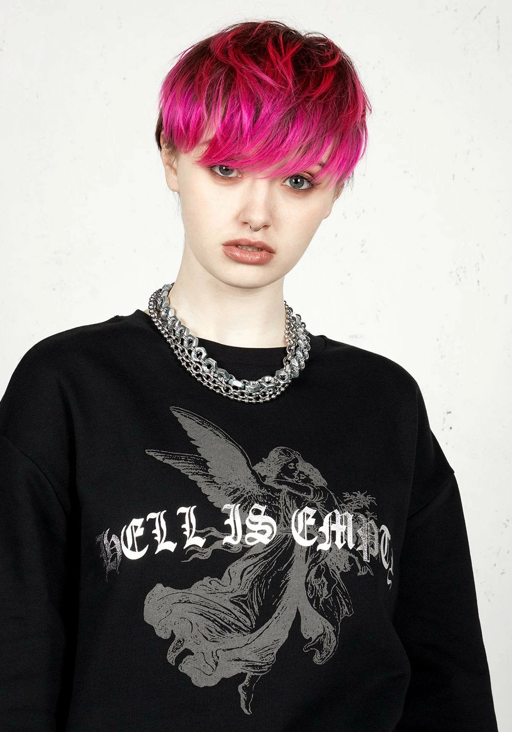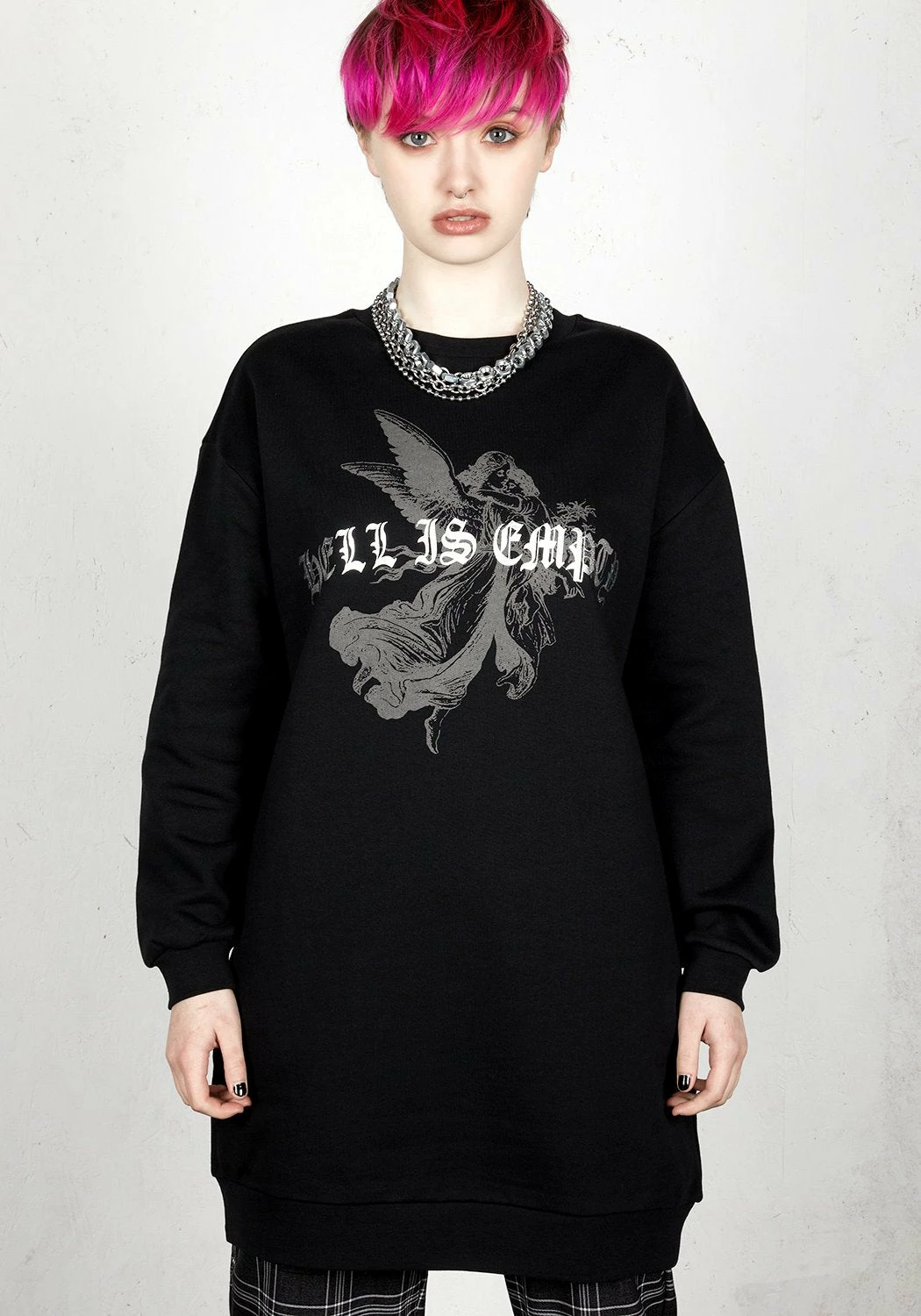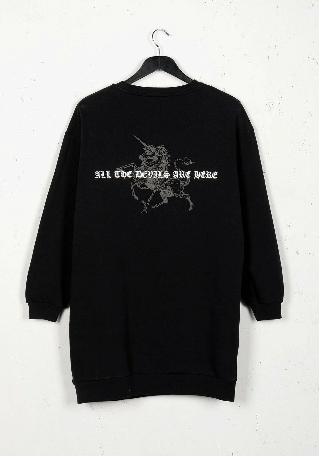 ⸸ Slouchy black sweater dress with dark romantic graphics