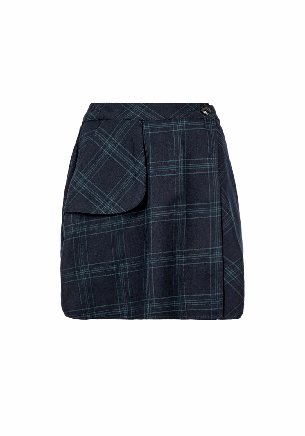 Finally: a check mini wrap skirt that nails the ‘dark arts student drinking red wine in library at midnight’ aesthetic you’ve been waiting for