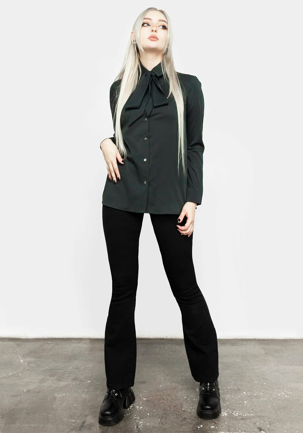 โฆ Forest green pussybow shirt