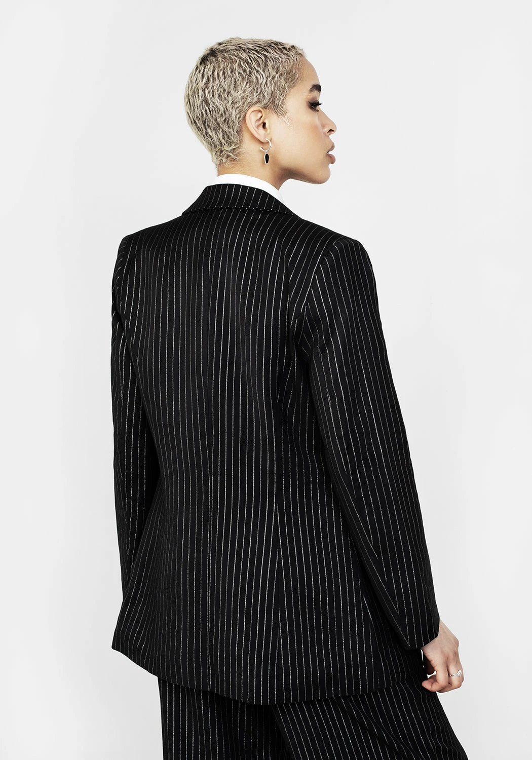 ✦ Black pinstripe blazer with silver hardware