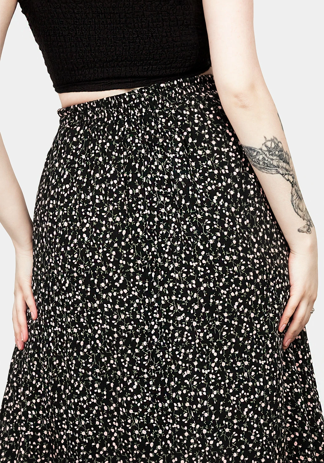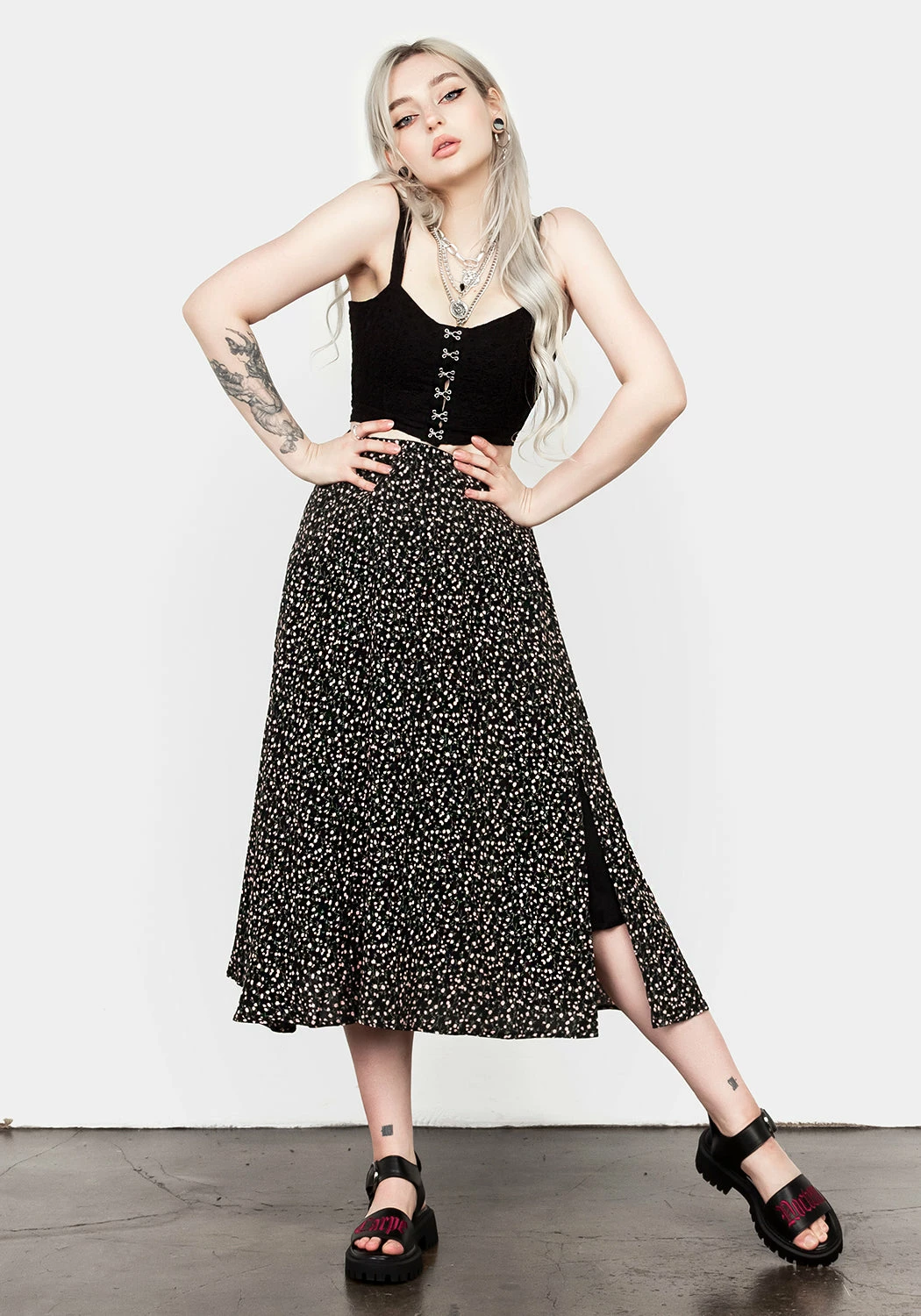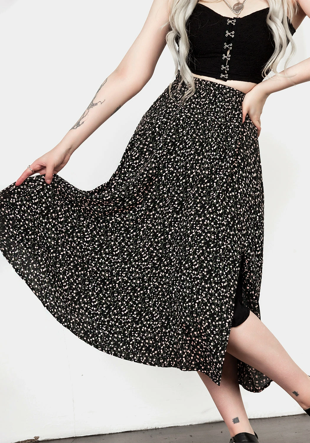 ✦ Floral patterned midi skirt with side split