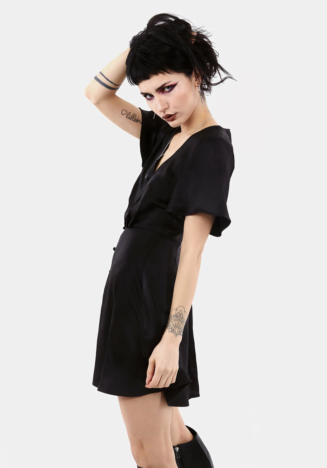 ❦ Button-up V-neck mini dress
