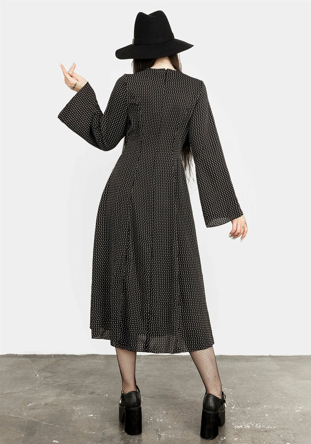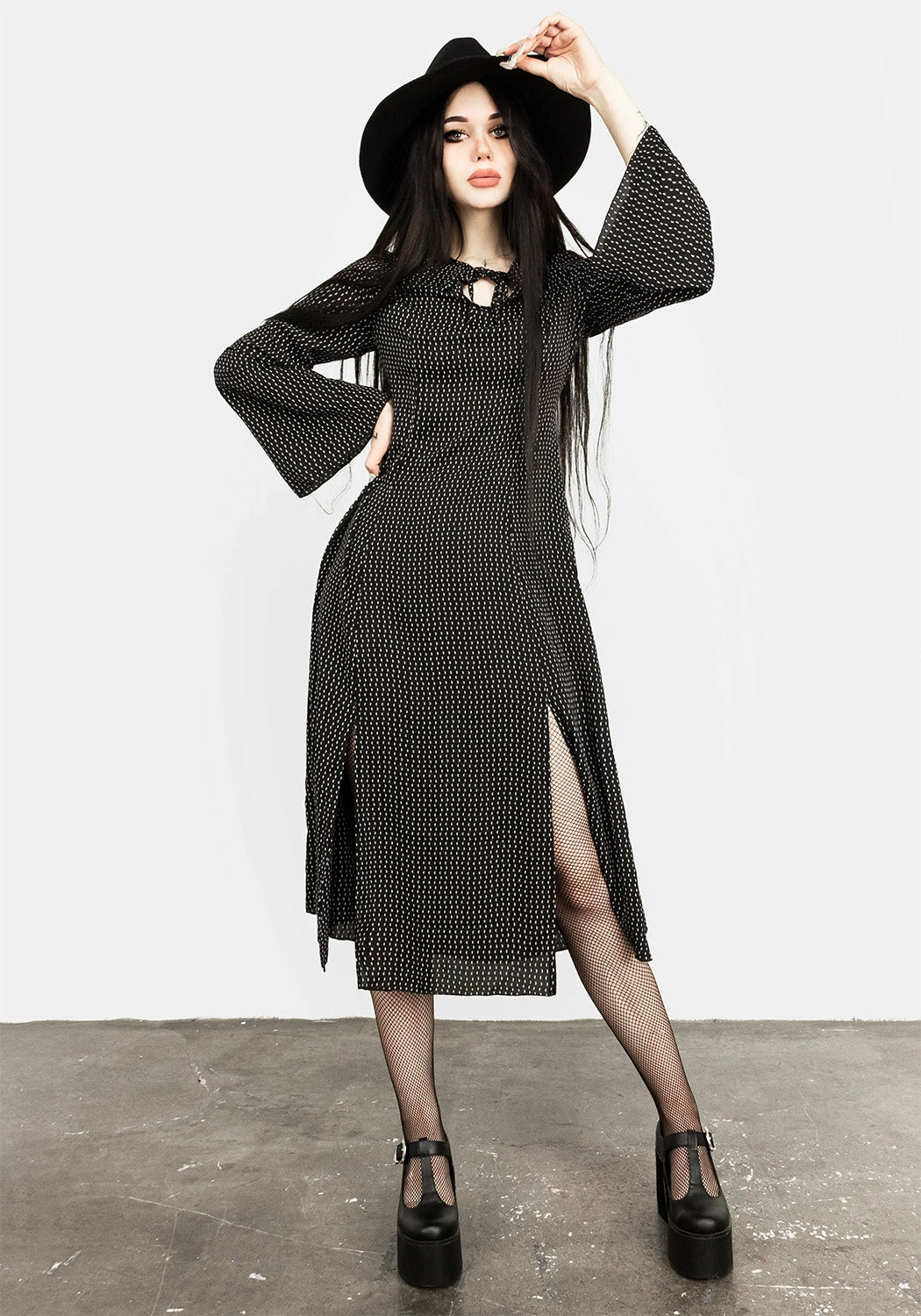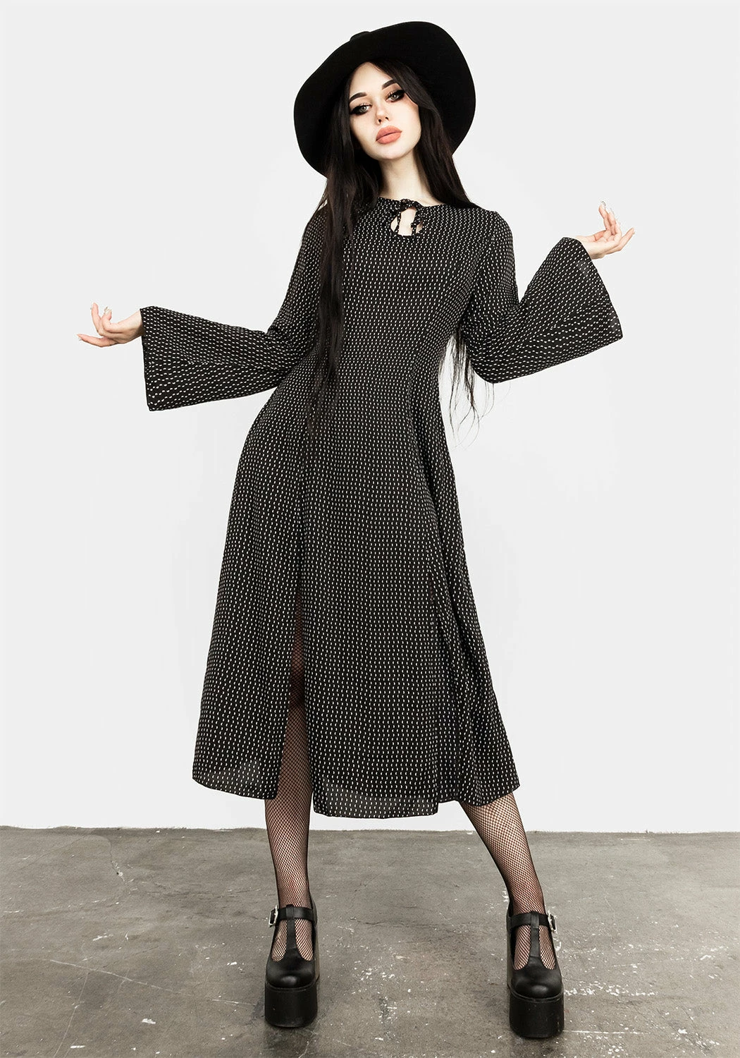 ☽ Black 70s split midi dress