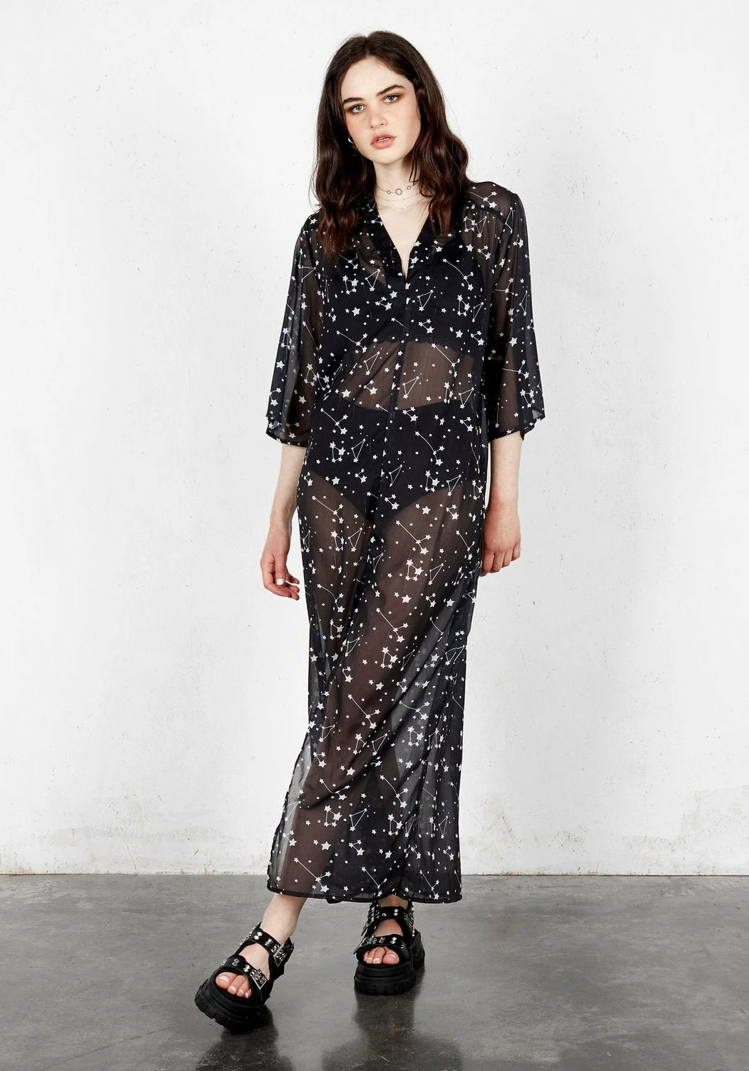 ★ Maxi sheer black kaftan with stars design