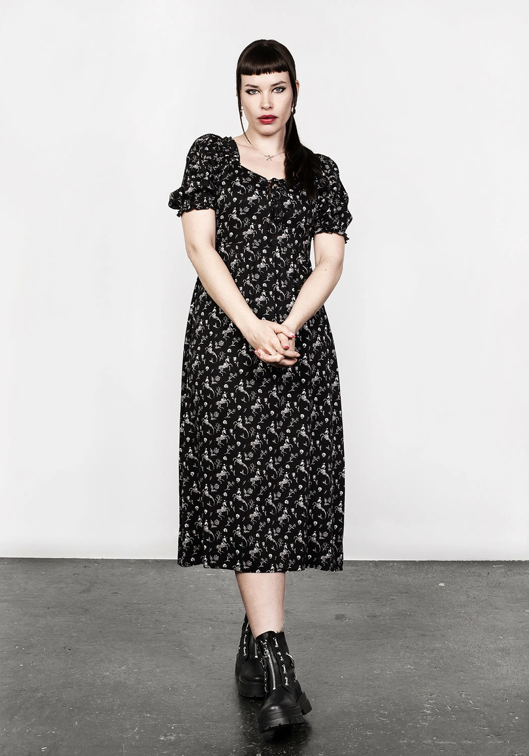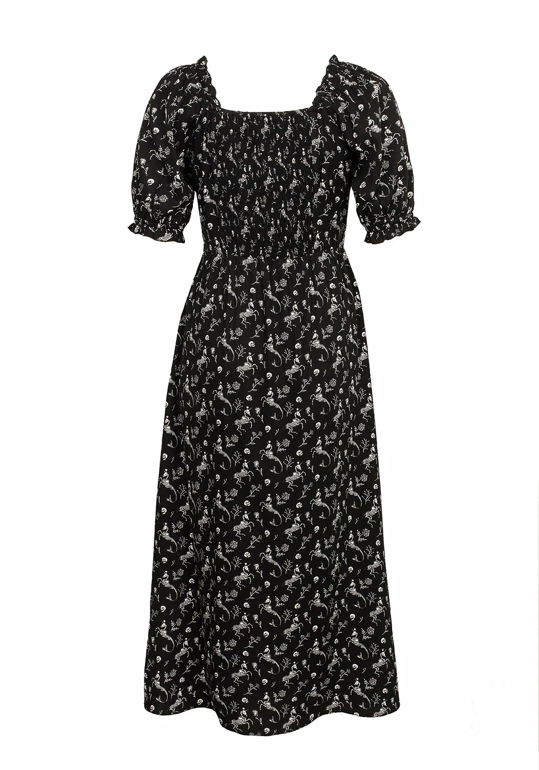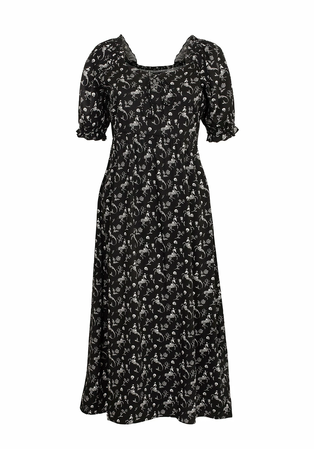 ✦ Puffed sleeves add body and balance to flowy A-line skirt