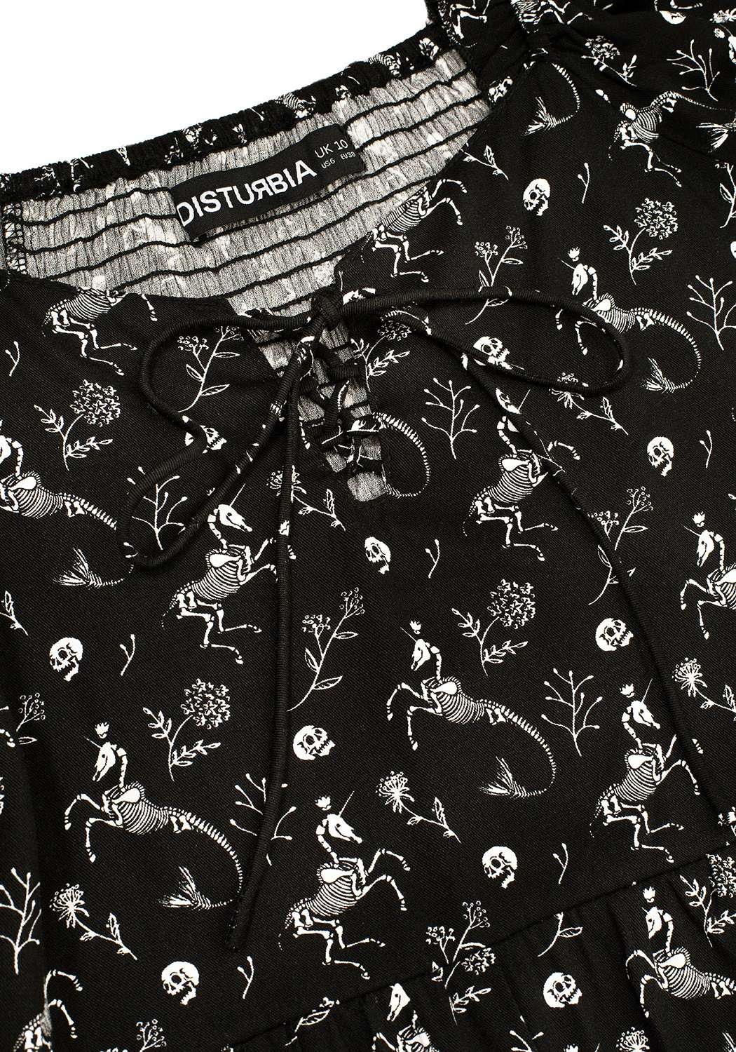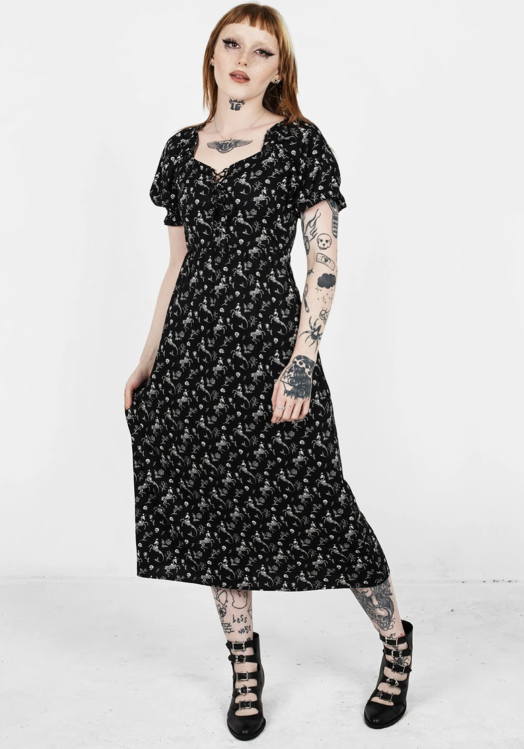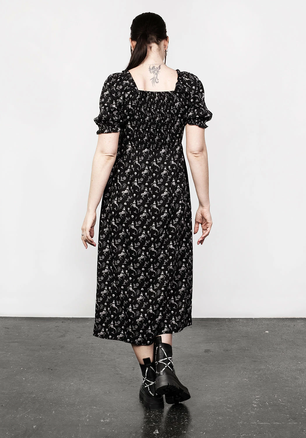✦ Puffed sleeves add body and balance to flowy A-line skirt