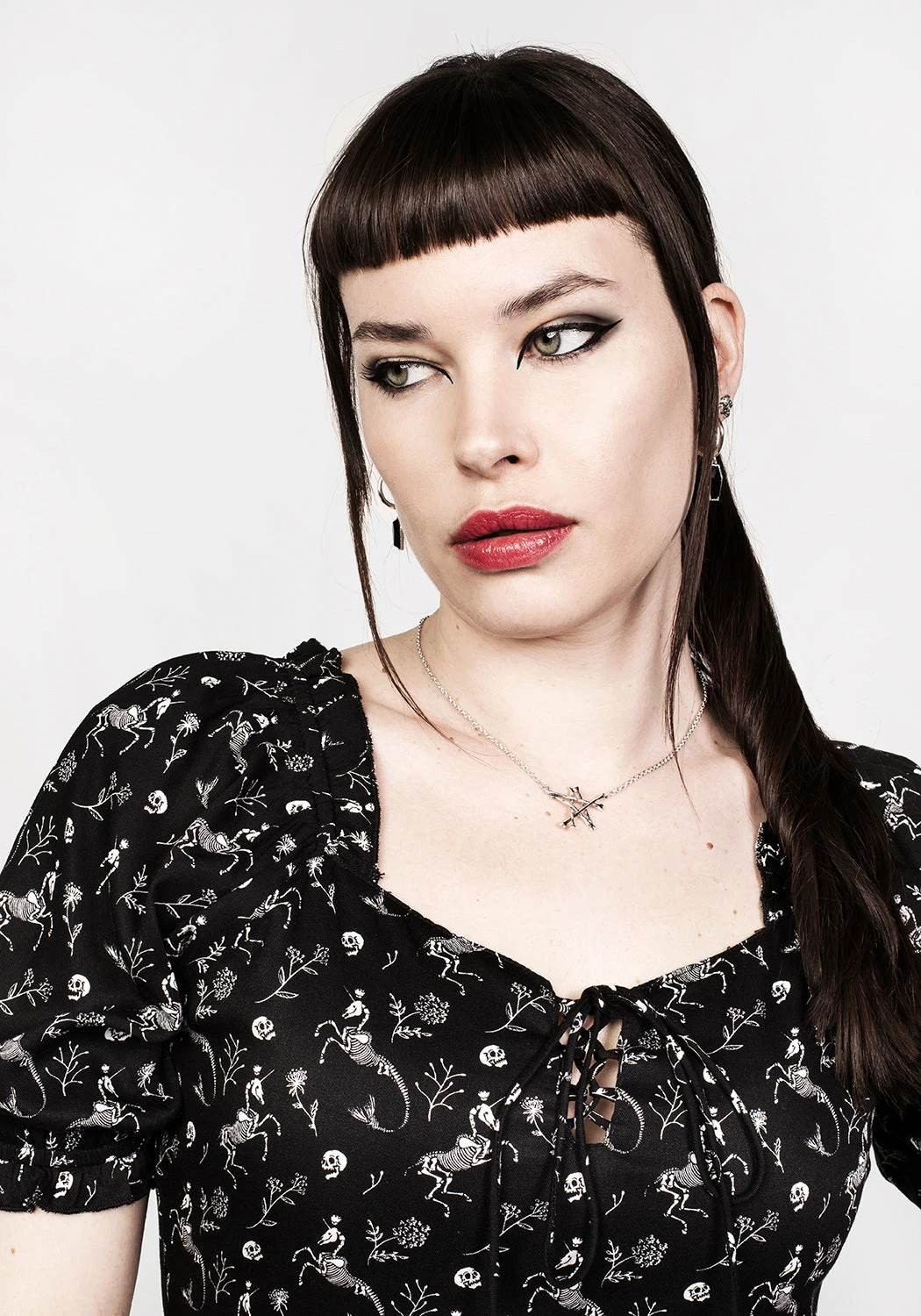 ✦ Functional lace up front with self-fabric ties – ultimate cleavage control