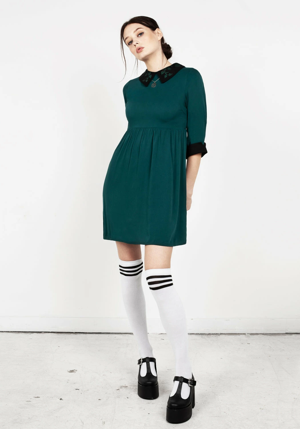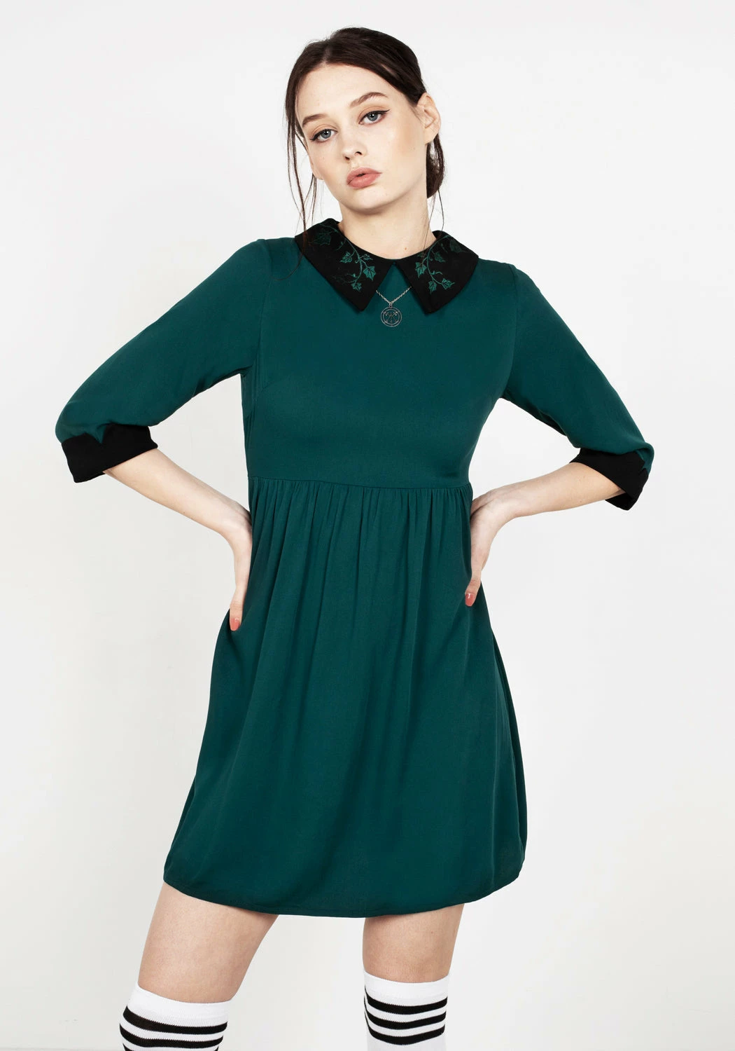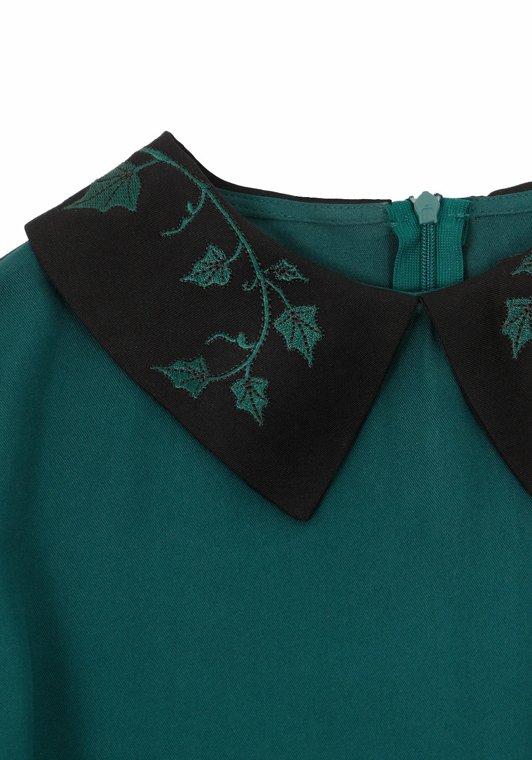 ❦ Peter Pan collar in black with forest green ivy embroidery