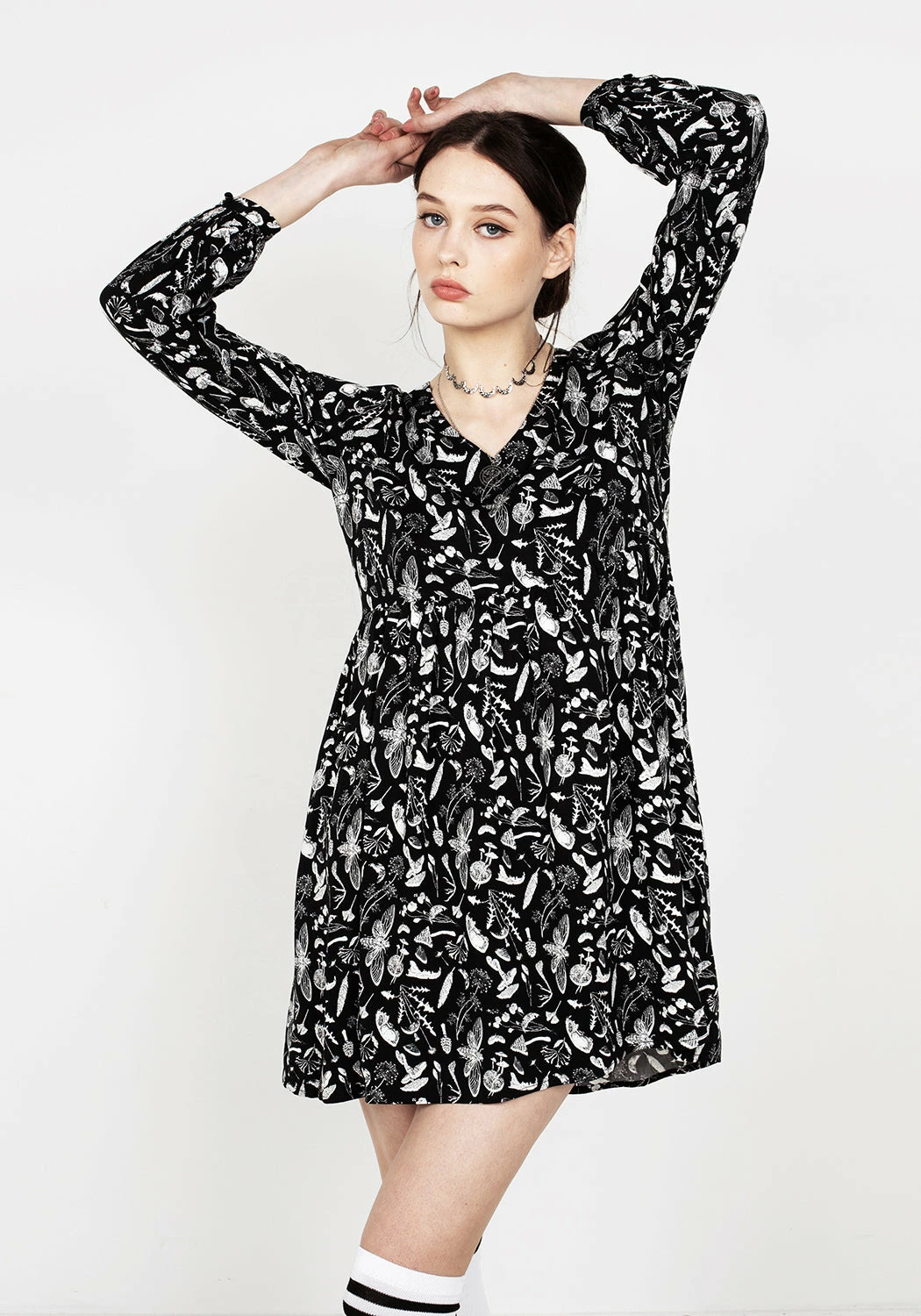❀ Long sleeve mini dress with all-over hedgewitch print
