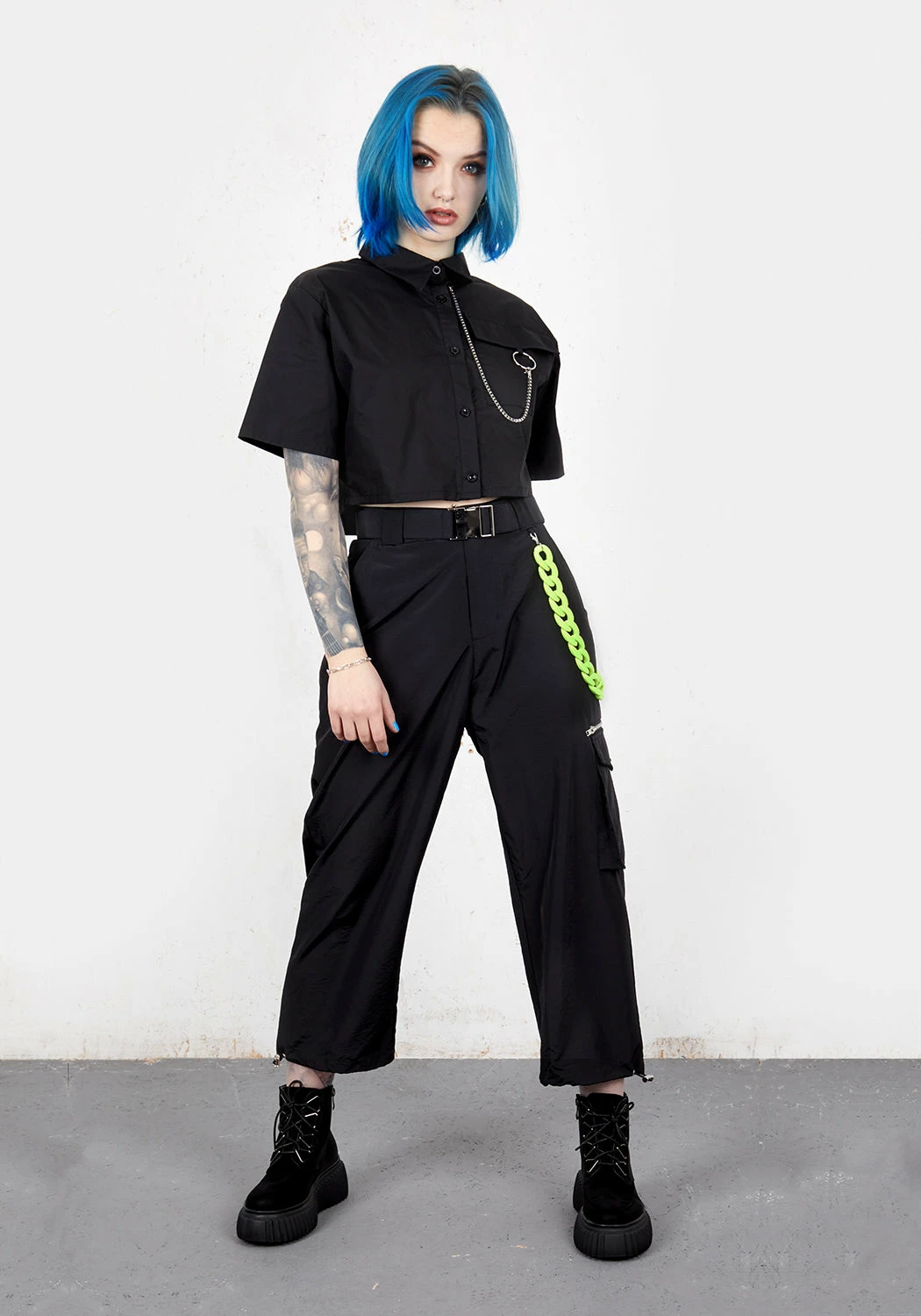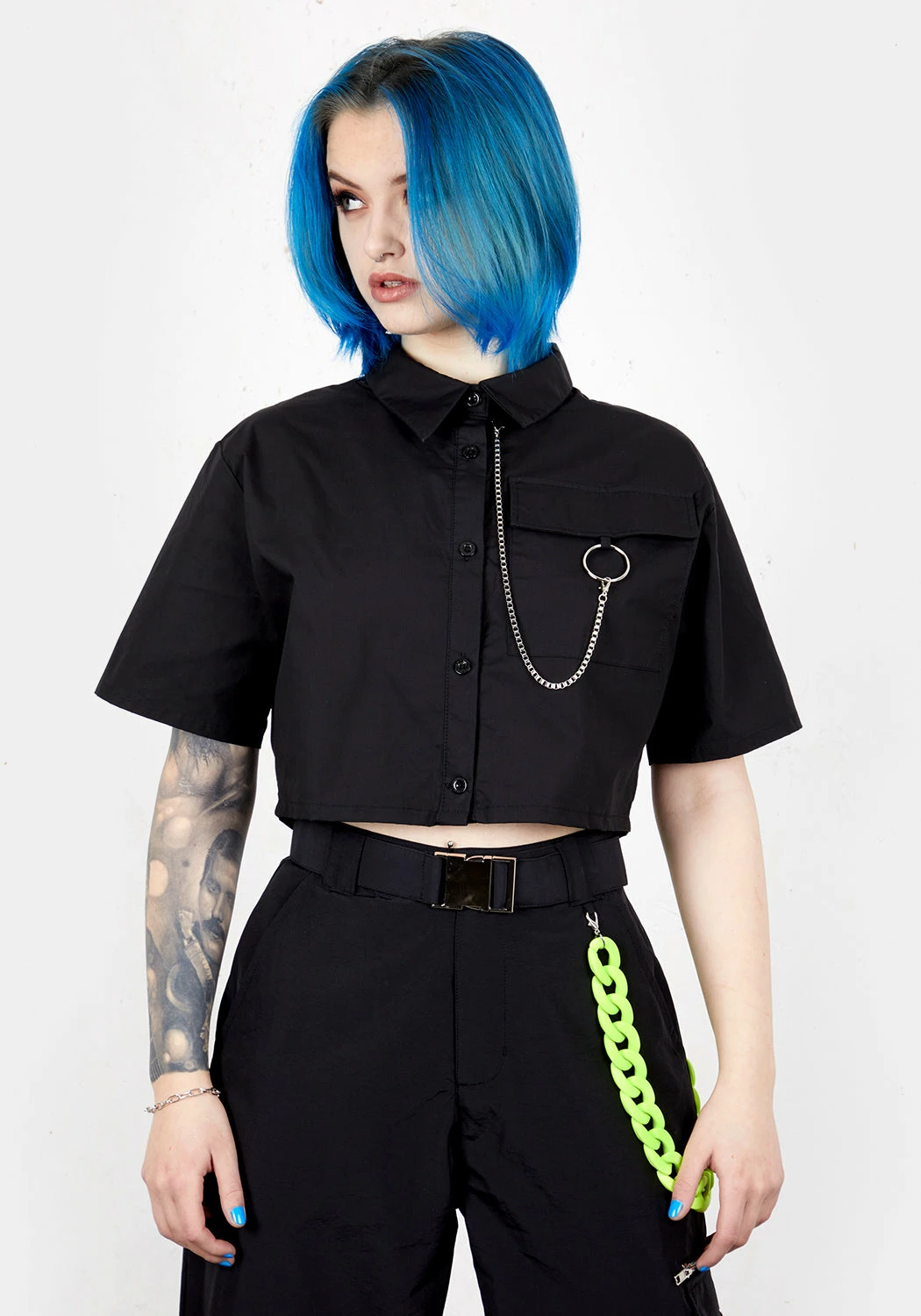 โฏ Silver metal O-ring attaches bike chain trim (32cm) from chest pocket flap to collarstand