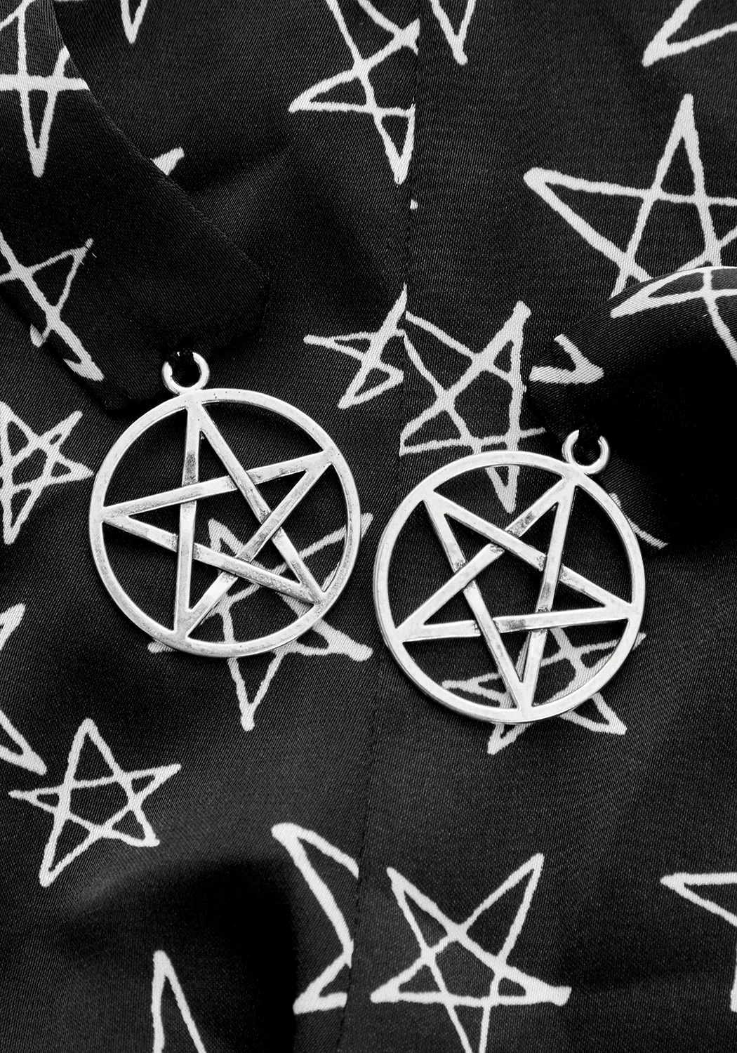 ❦ Flat silky waist ties with gunmetal eyelets & silver pentagram charms