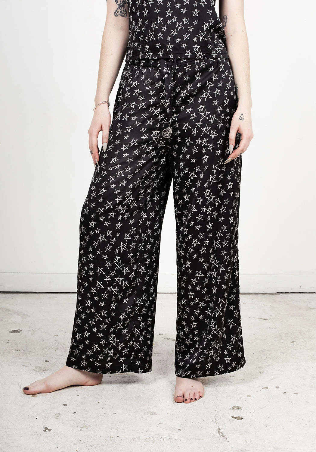 ❦ Black silky pentagram pants
