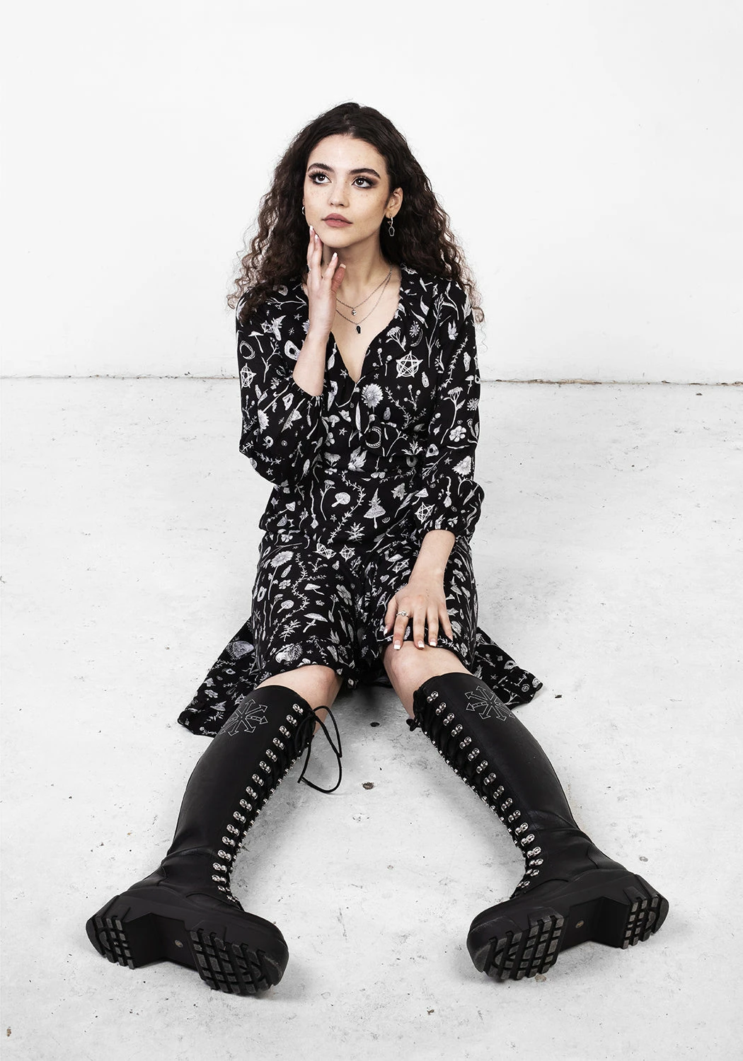 ☽ All-over bewitching floral and faunal print