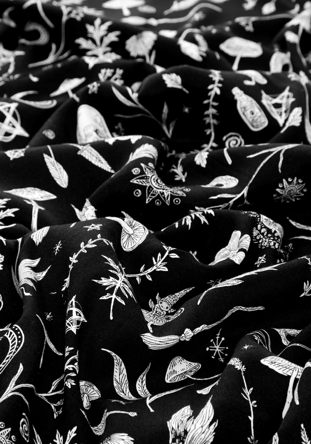 ☽ All-over bewitching floral and faunal print