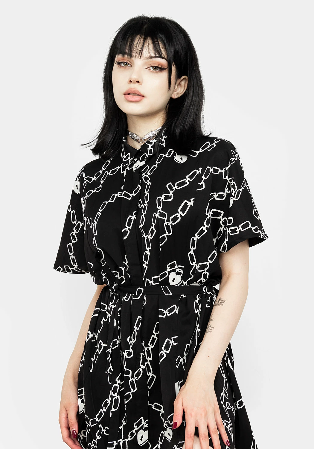 ❦ Black breathable fabric with white love-lock & chain all-over print