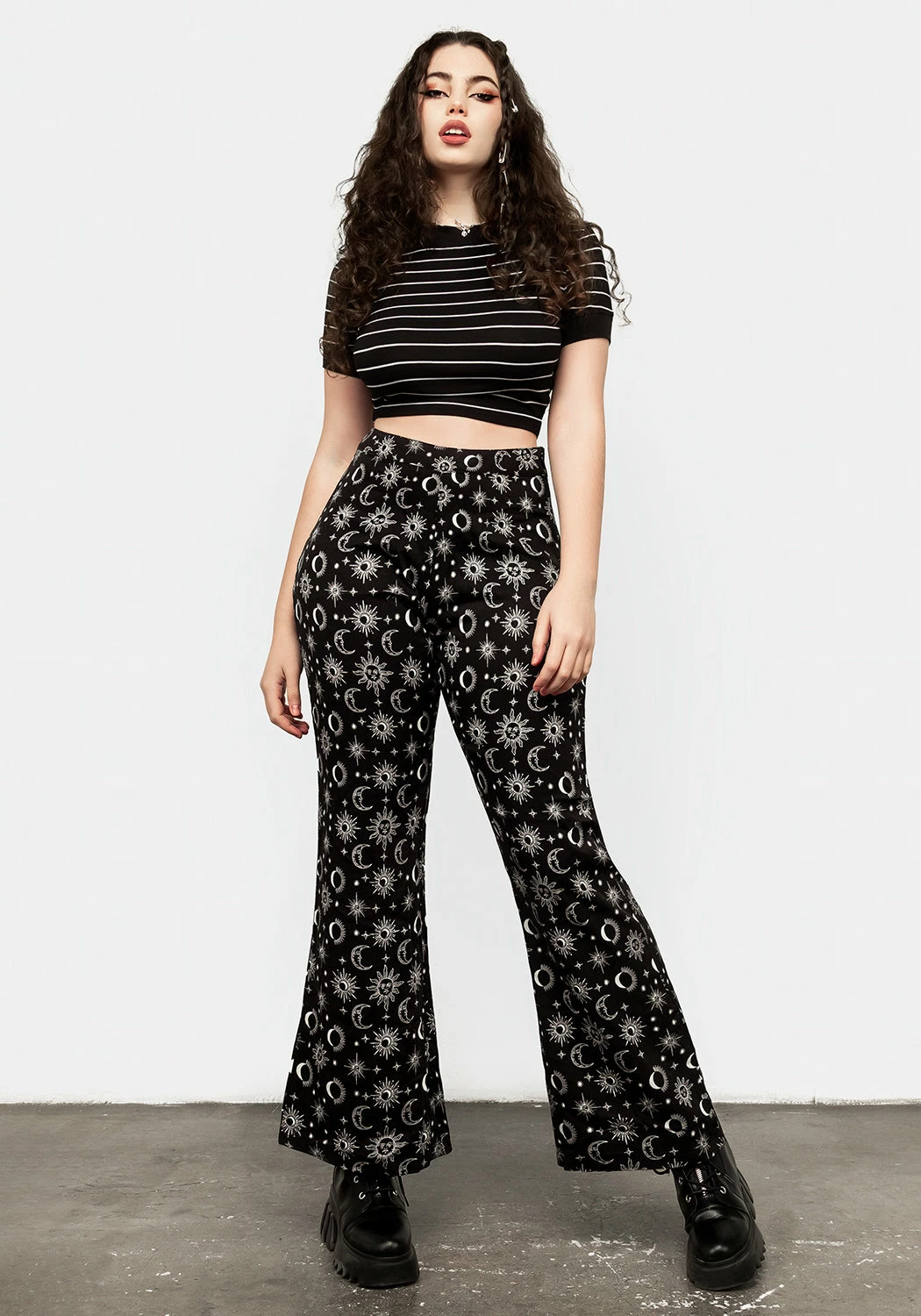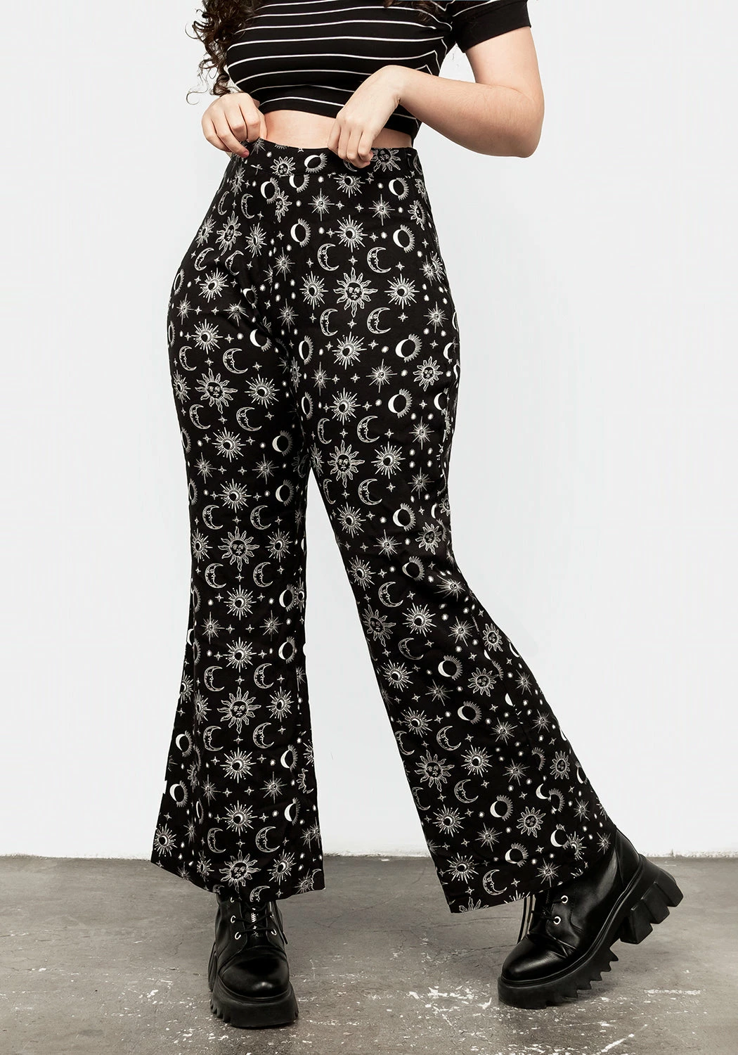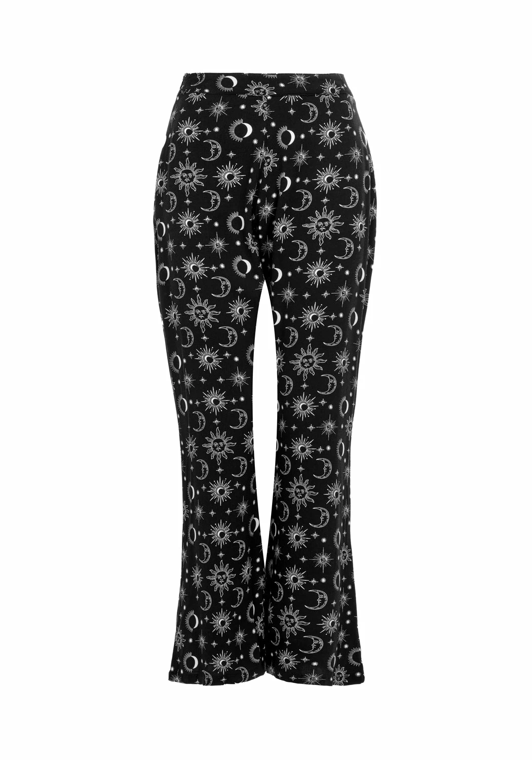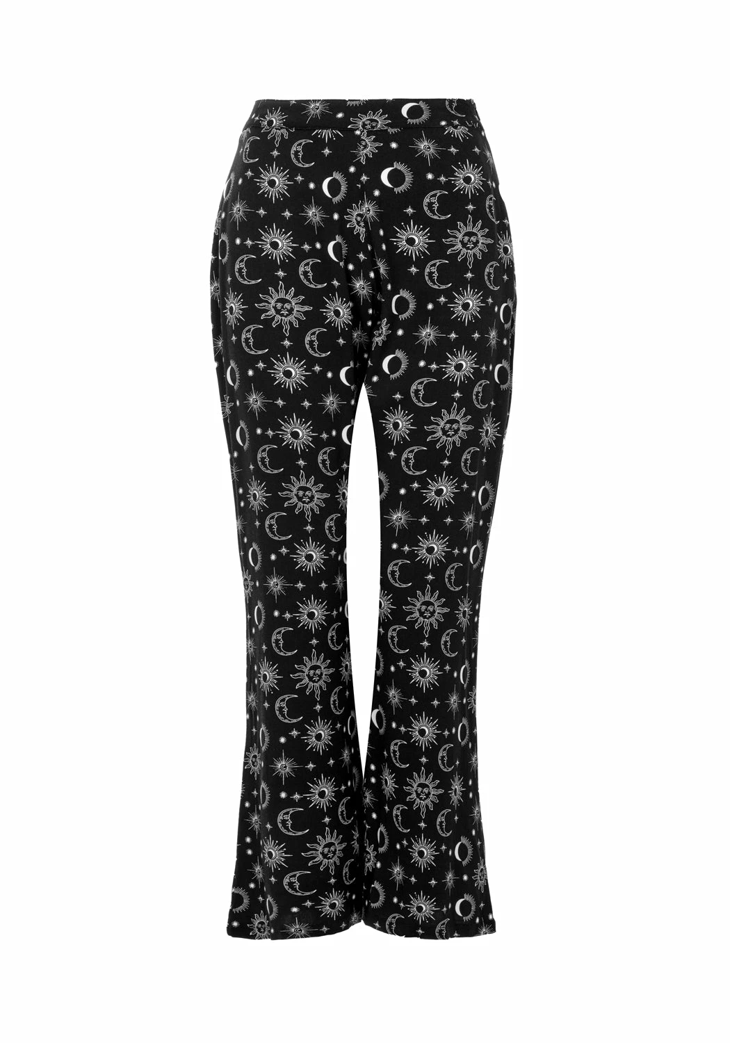 ✶ Black flared trousers with white celestial print
