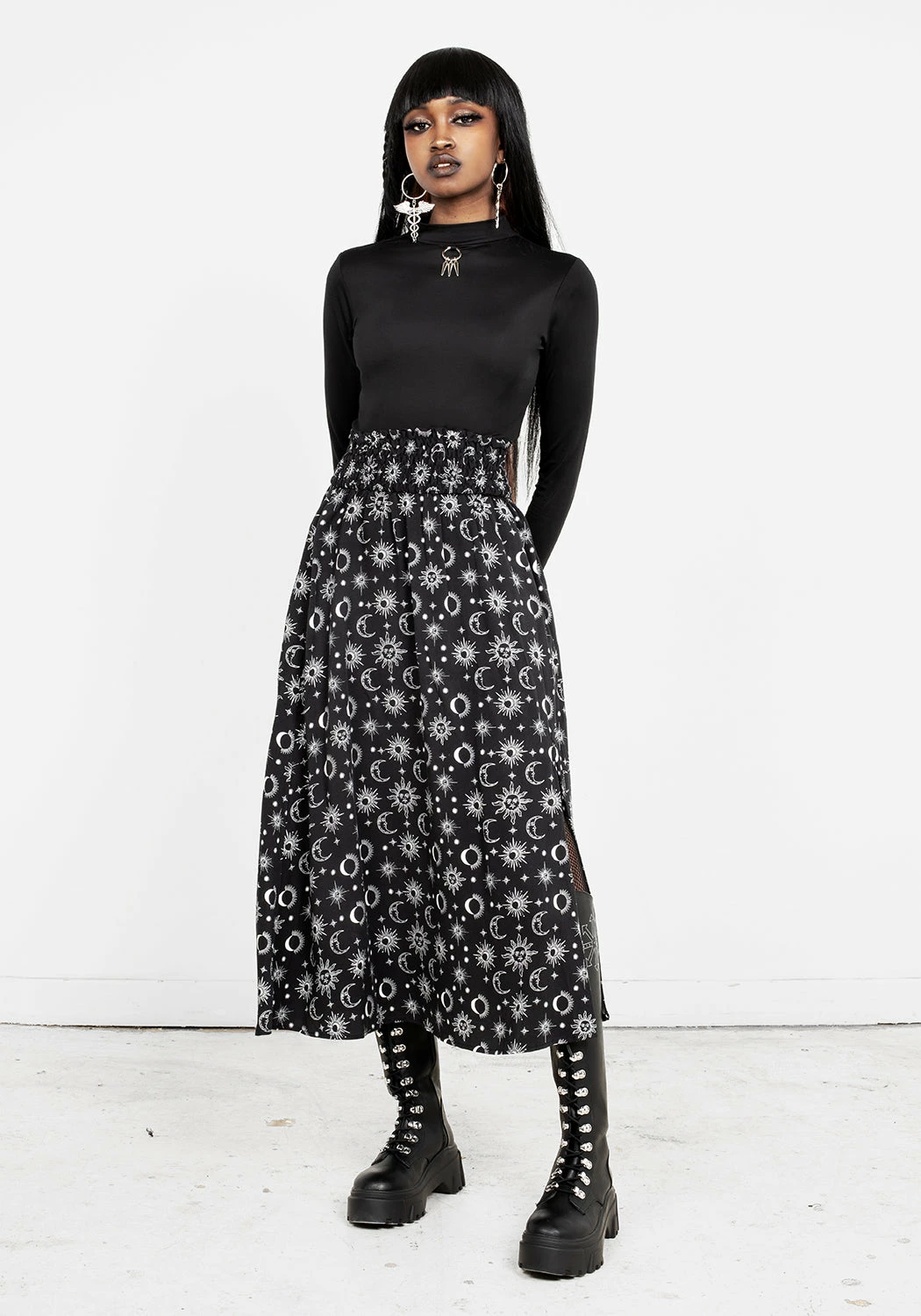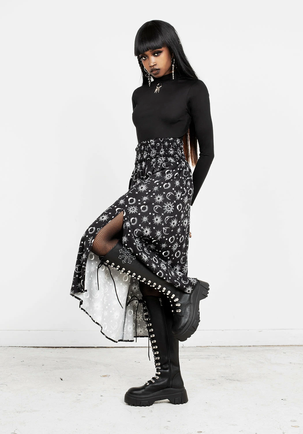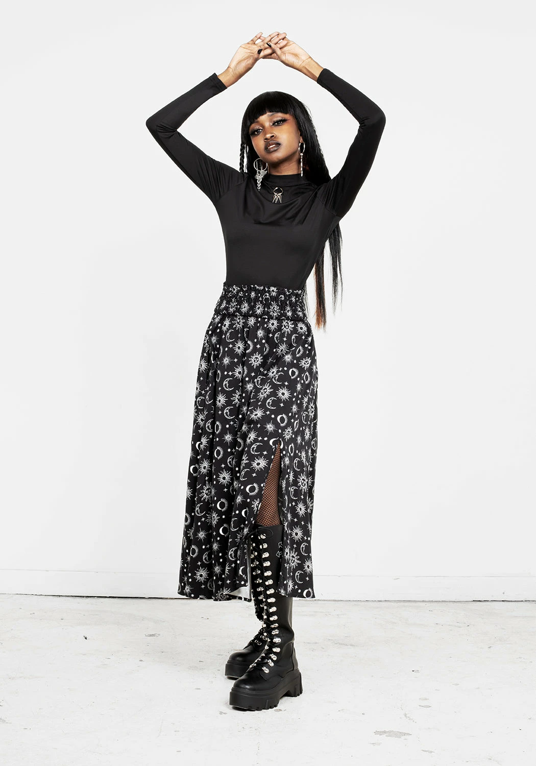 ✶ Starry midaxi skirt with front leg split