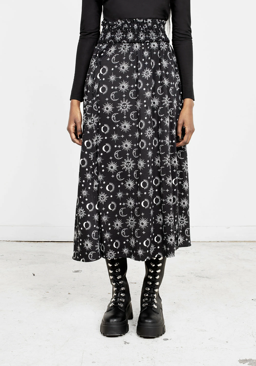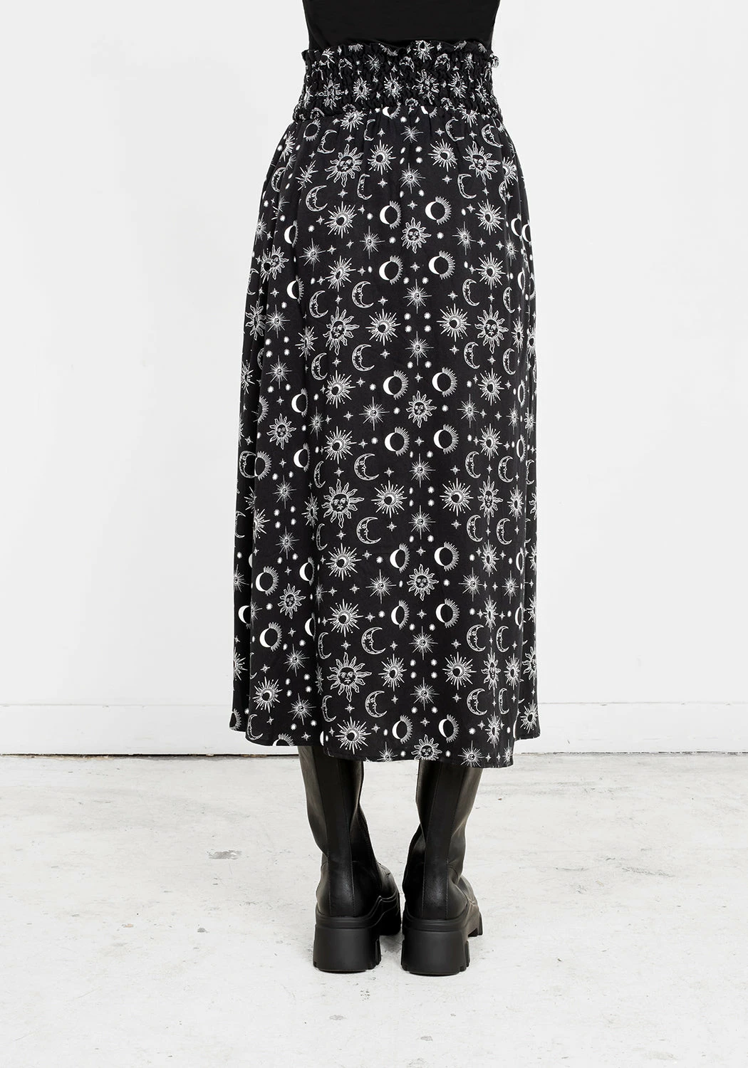 ✦ All-over white celestial print on black fabrication