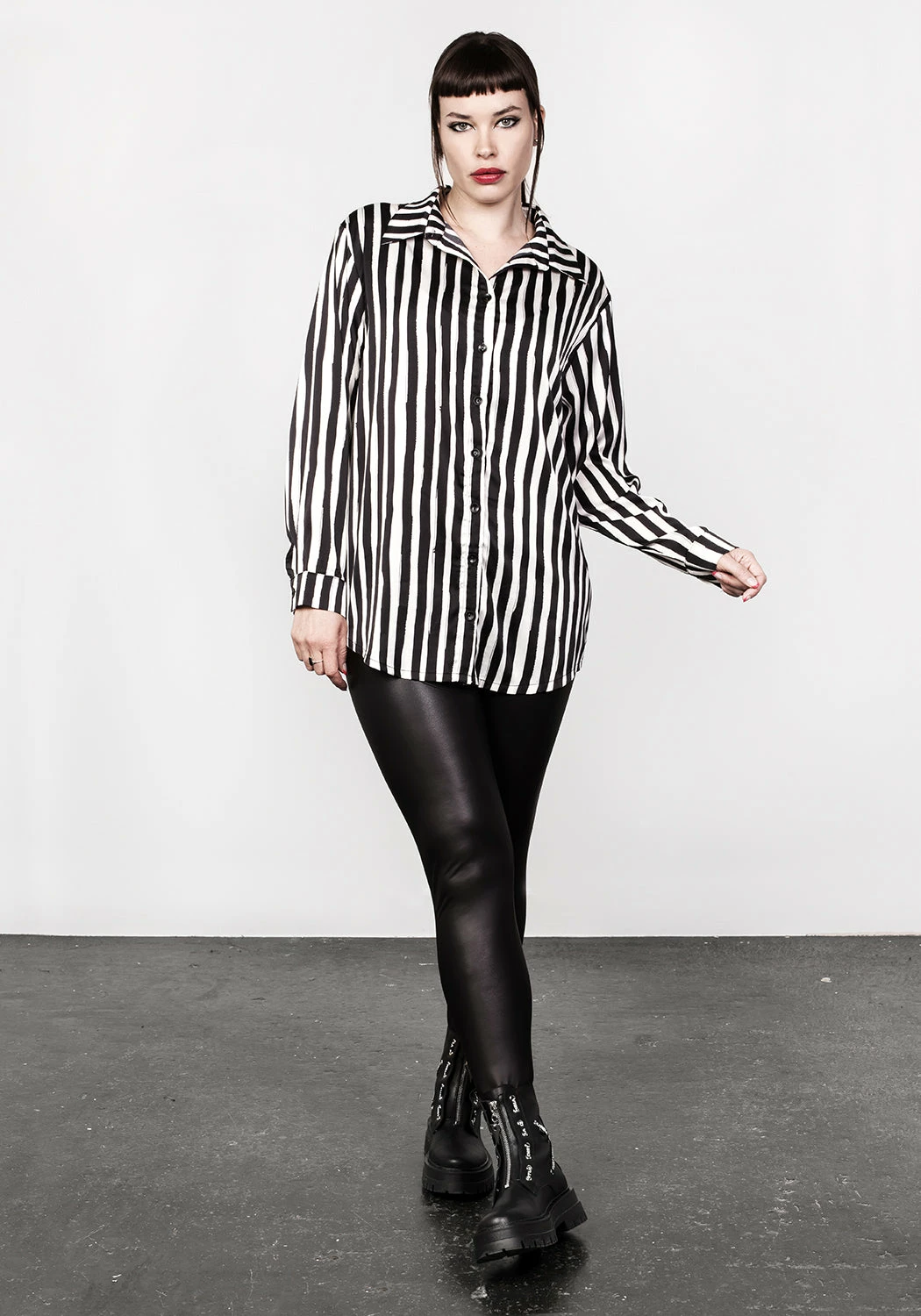 ✦ Dropped shoulders and baggy sleeves end in sophisticated cuffs