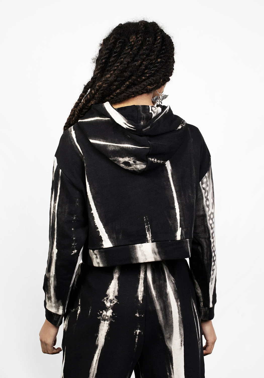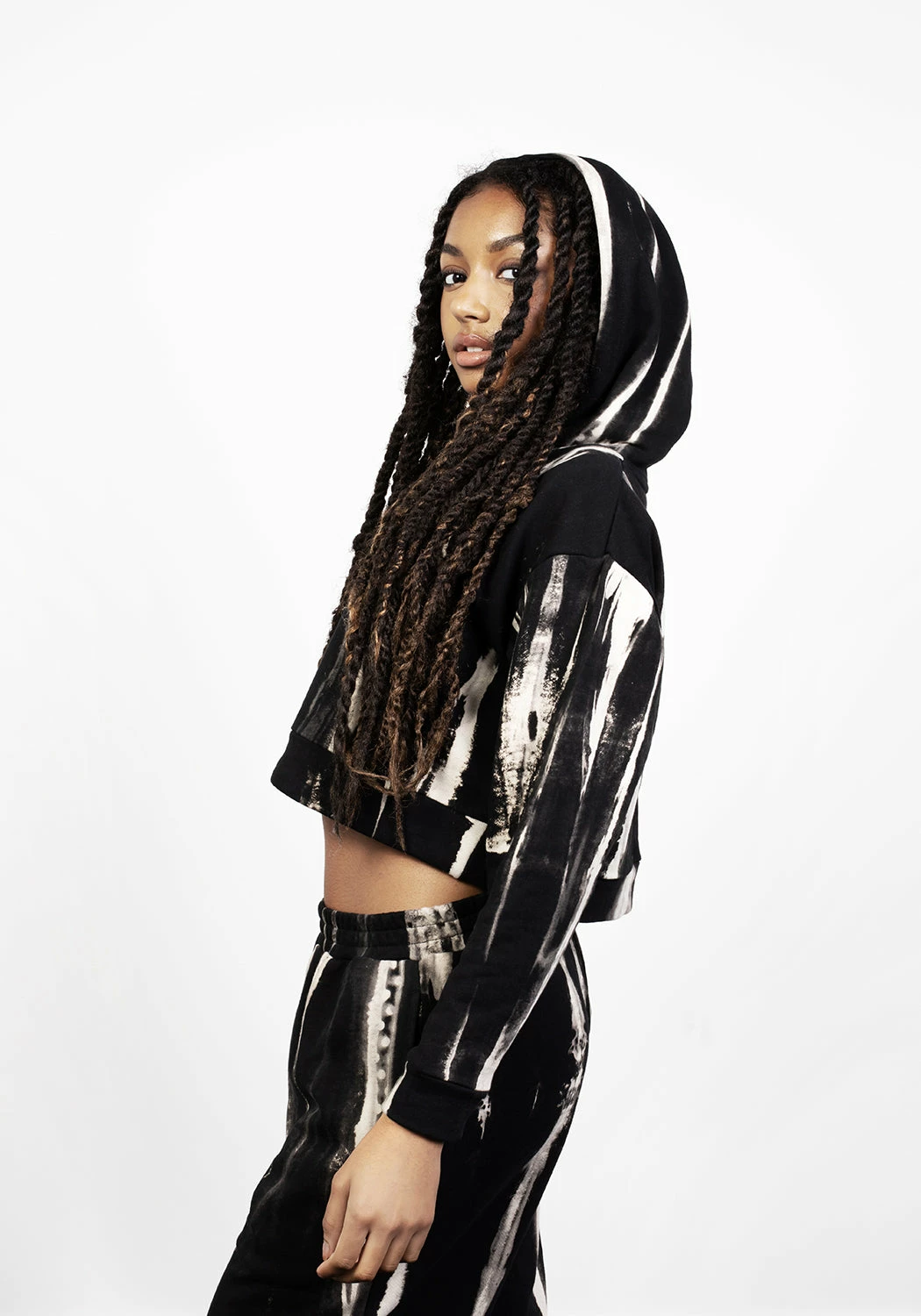 ❥ All-over stripe tie-dye print in grey, black & white (non-stretch fabrication)