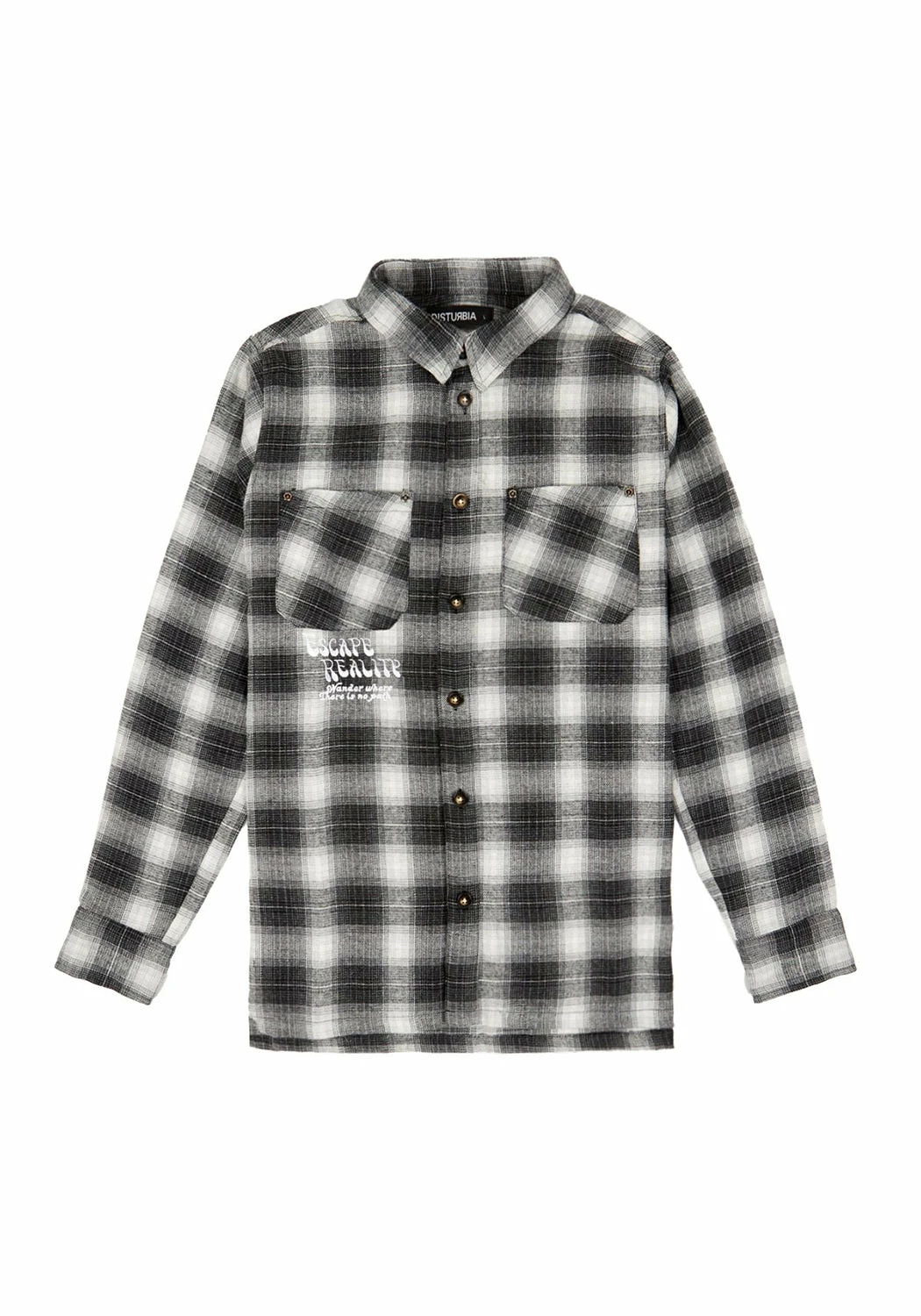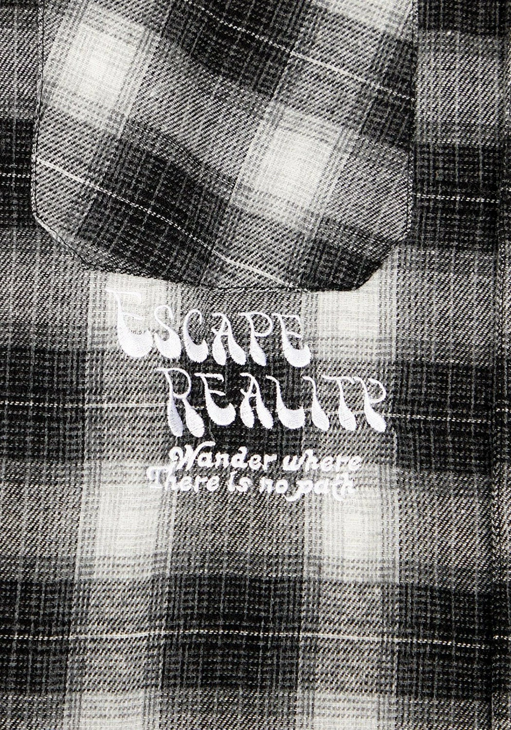 – White embroidered Escape Reality slogan under right chest pocket