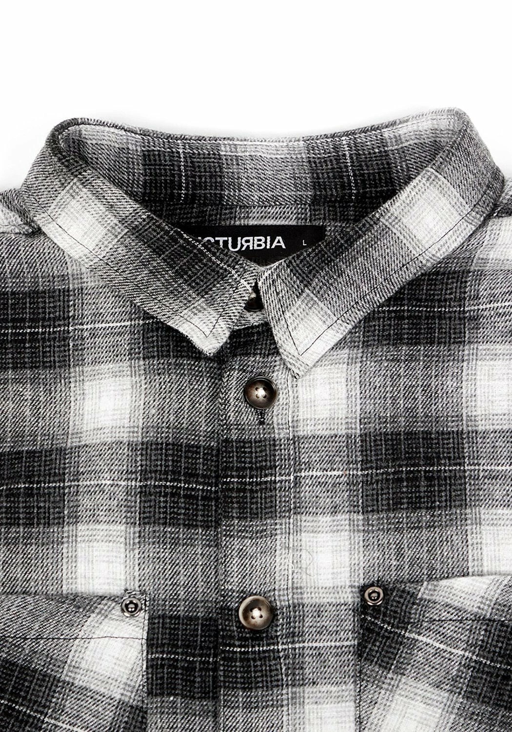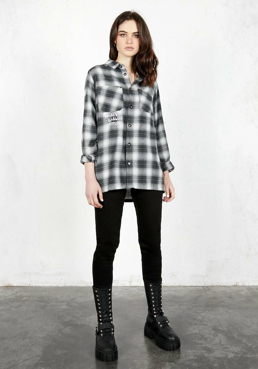 – Grunge-influenced grey plaid all-over design