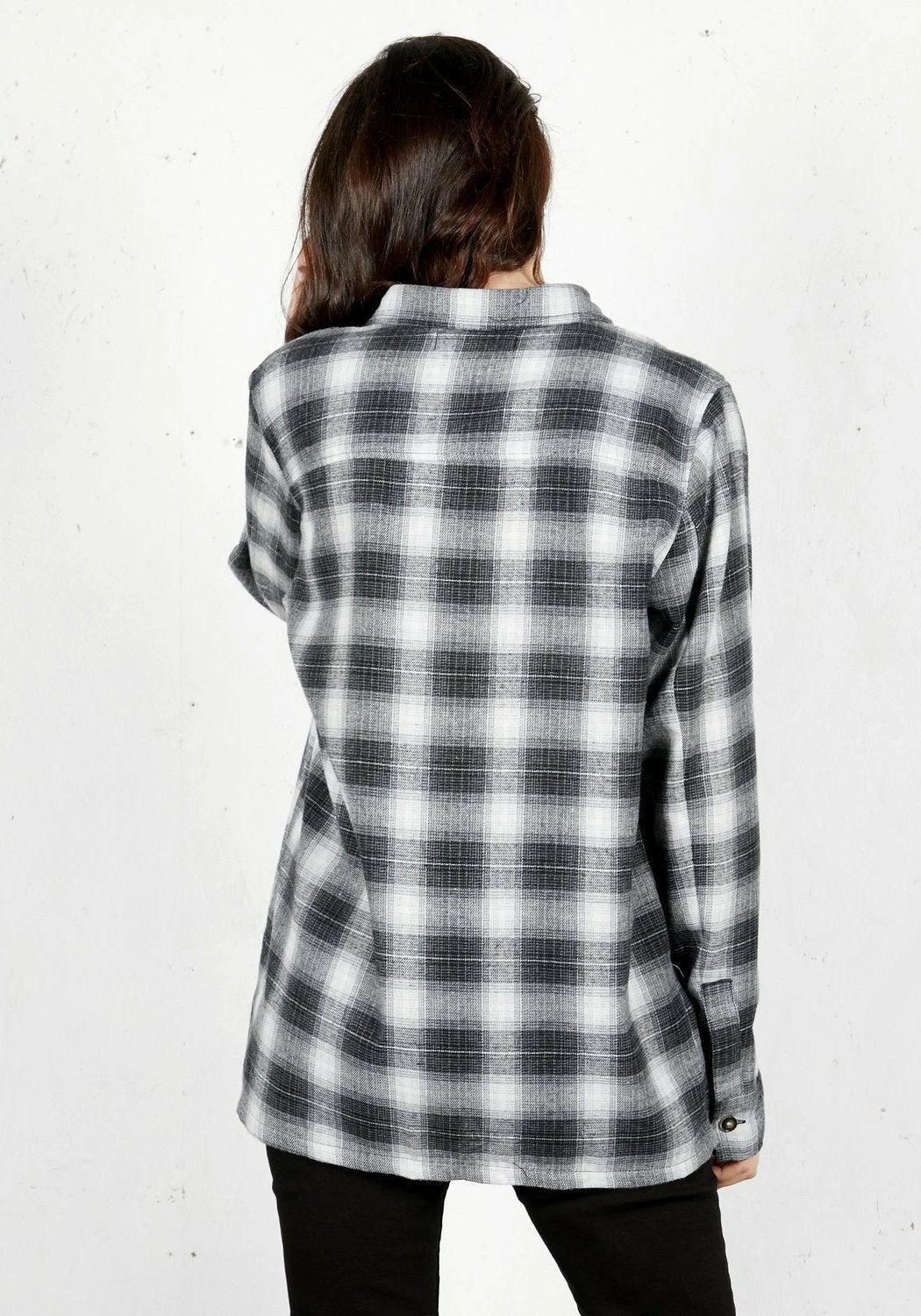 – Long sleeve buttoned plaid shirt in grey