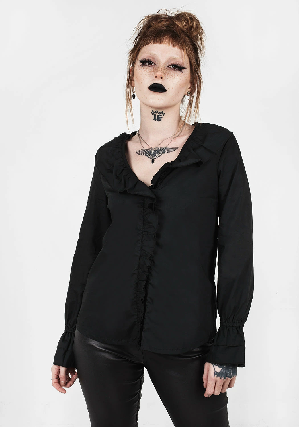 ▶ High ruffle neck detailing