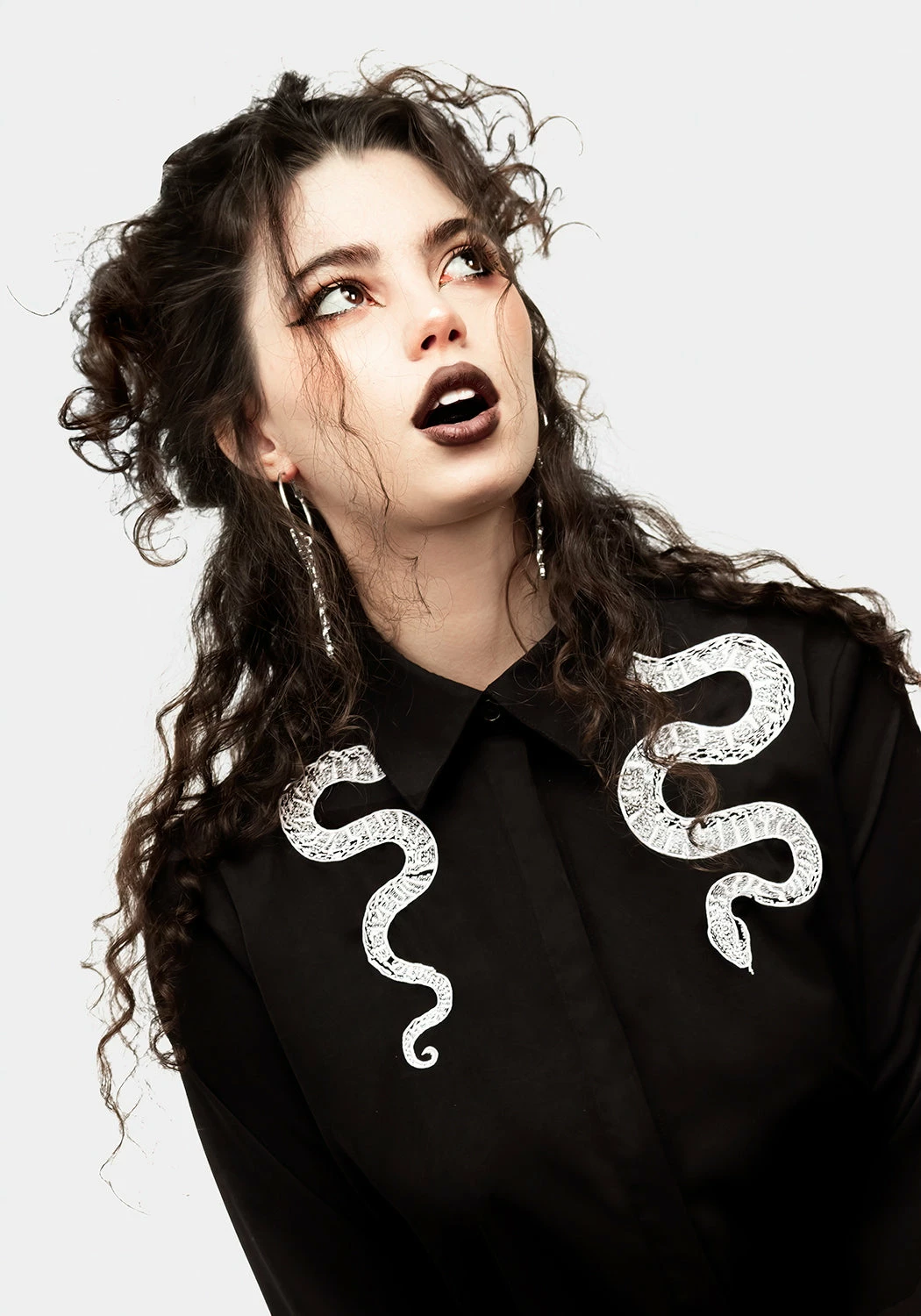 ❦ Black relaxed fit long sleeve snake shirt