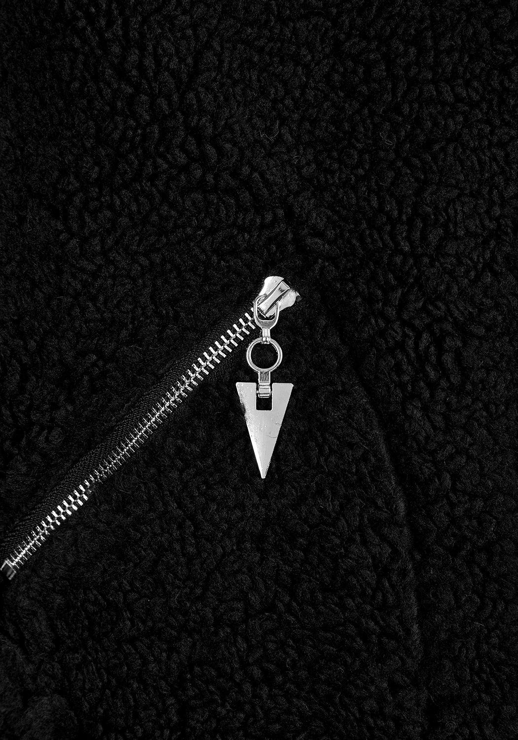 â–¼ Front zip fastening with silver triangle ziphead
