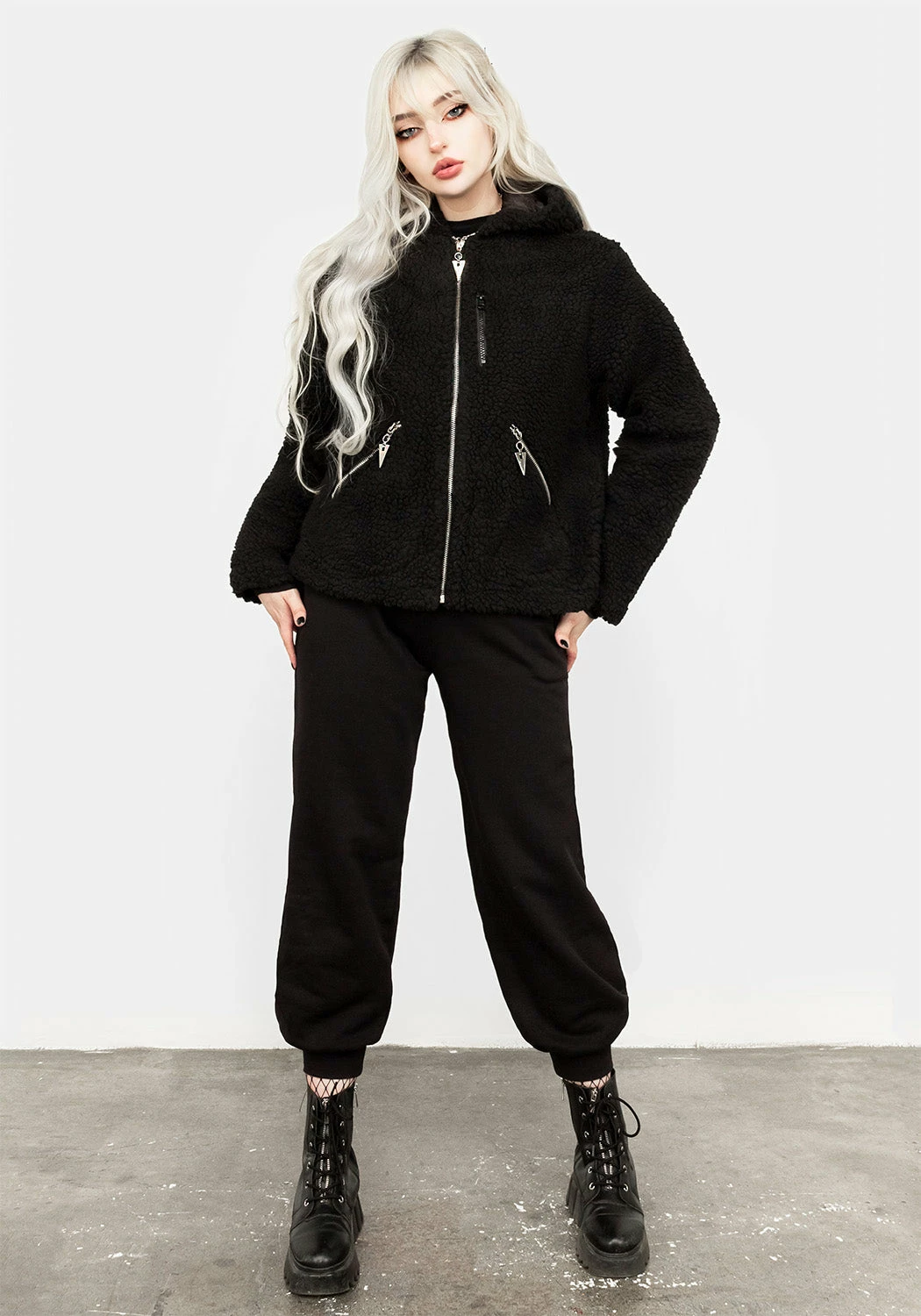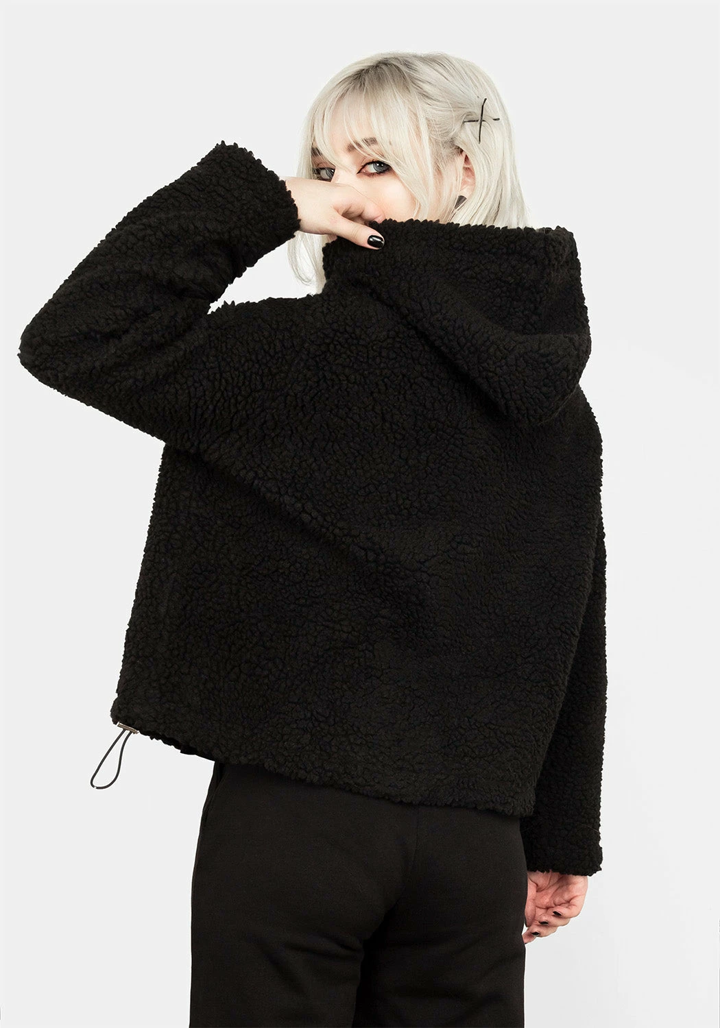 â–¼ Black teddy borg oversized jacket