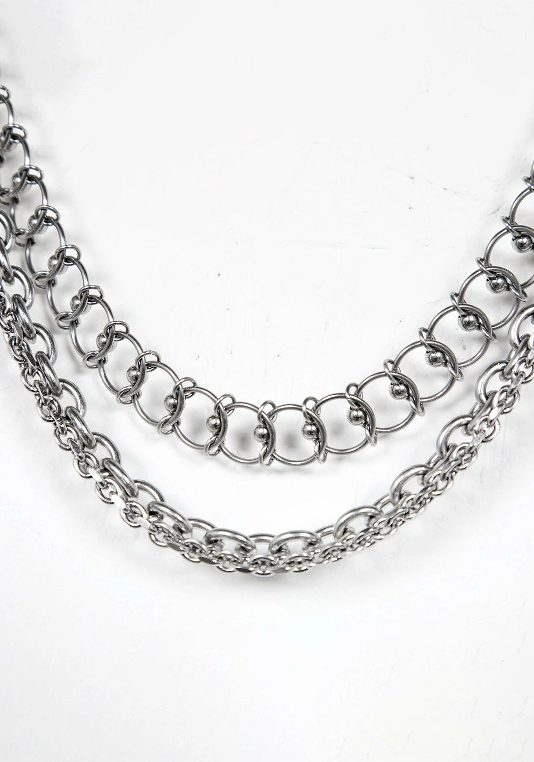 π Two chains fall above and onto collarbones